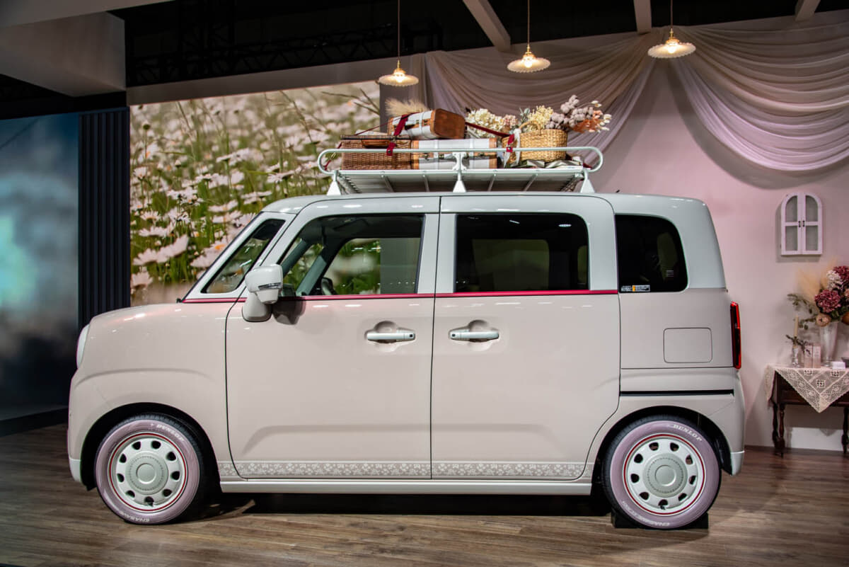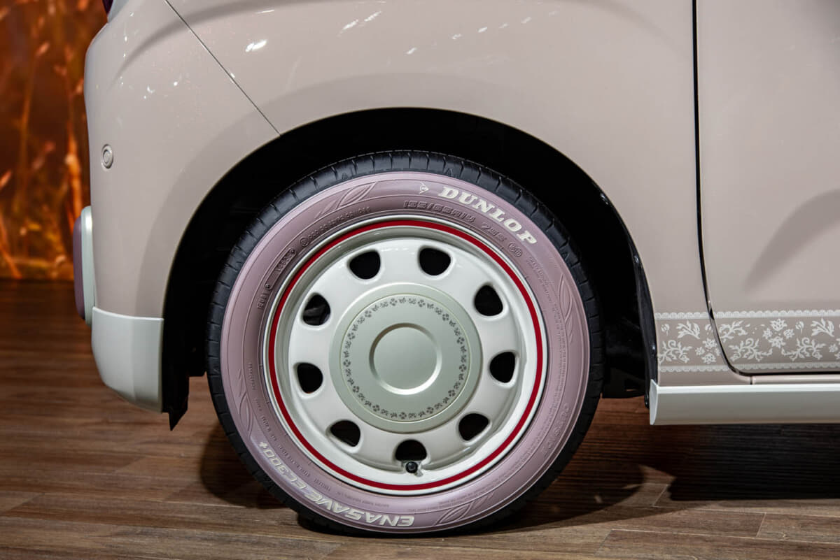 エクステリア、インテリアともに、とにかくかわいいを重視した仕様はワゴンRスマイルにマッチしたカスタマイズと言える。タイヤのサイドウォールまでピンクにしてしまうあたりは細かなこだわりを感じるポイントだ。