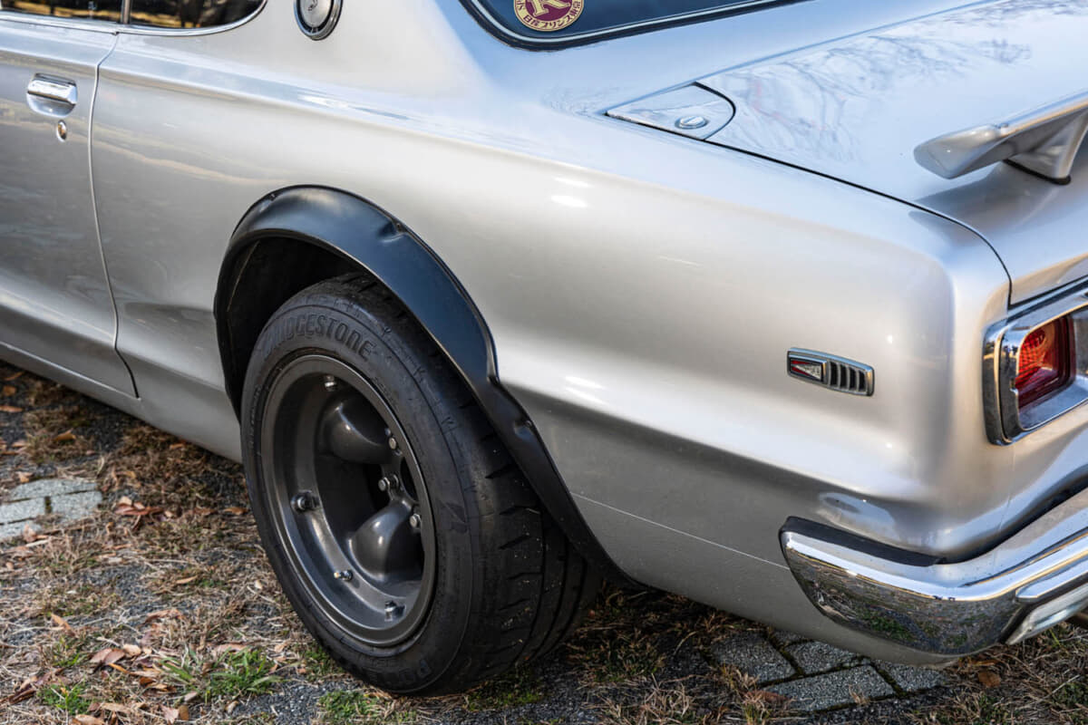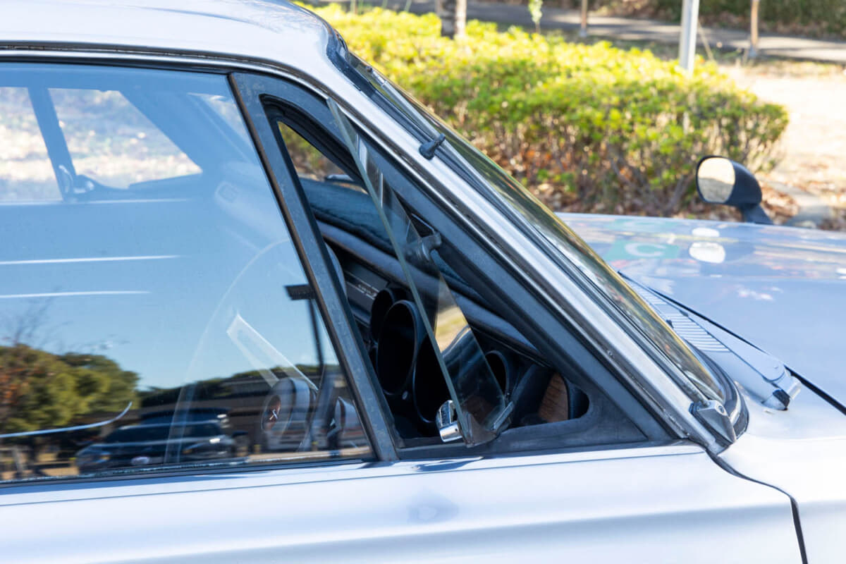 とハコスカの第一印象を語っていた佐々木さん。スカイラインGT-Rの初代モデルとなるハコスカGT-Rにはセダンとハードトップの2種類がラインアップされていたが、撮影車両は後から追加となったハードトップ。運動性能を高めるためにホイールベースがセダンより70mm短縮された、よりレース志向のハコスカGT-Rと言える。レーシングドライバーの佐々木さんには、機能美を求めたハードトップのシルエットが刺さったのだろう。
