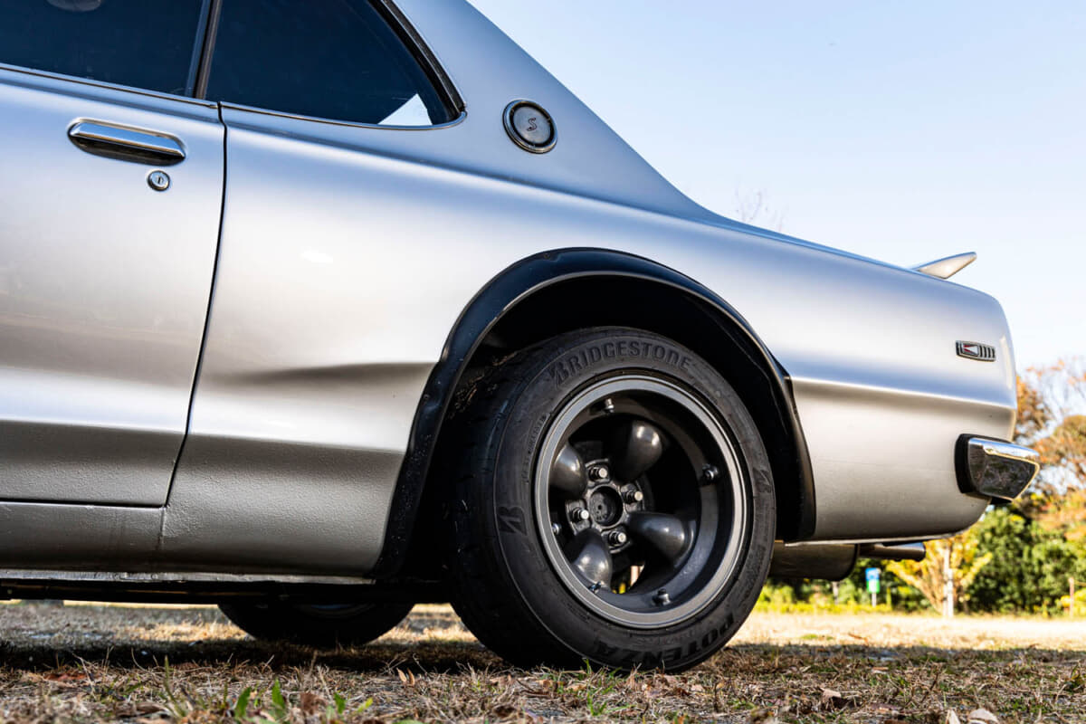 「やっぱりオーバーフェンダーがあると速そうな感じがしてカッコイイですよね! あとタイヤとホイールもなんだか時代を考えたら太い感じがして、“凄いクルマだぞ!”って雰囲気が出てます!」