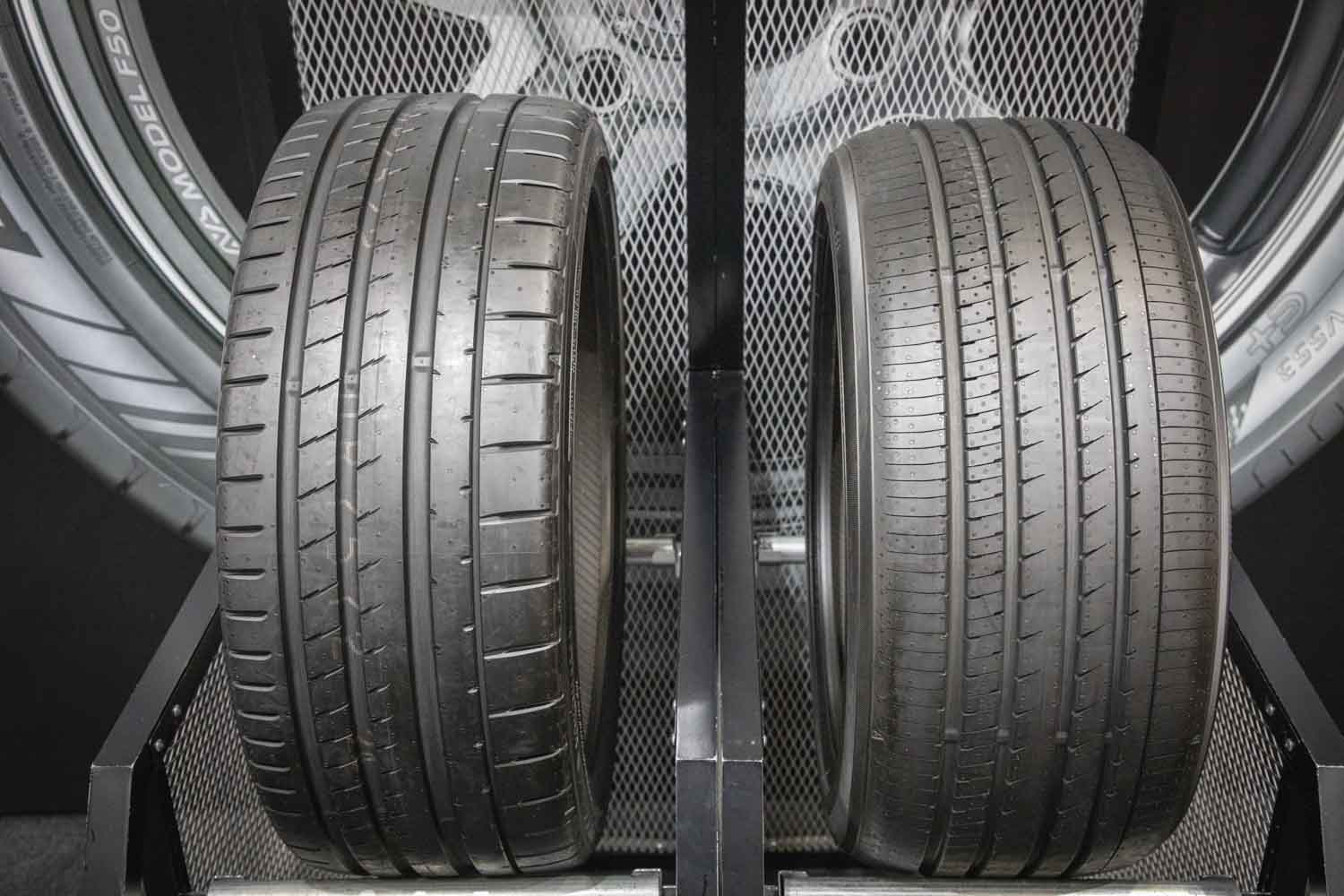 もともとADVAN Sportは、BMWなど欧州のプレミアムカー用というイメージが強かったが、今回はスカイラインとハリアーを並べることで、国産車にもベストマッチすることを強調。また、ハイパフォーマンスカーだけでなくセダンからSUVまで、幅広くカバーするのもV107の持ち味だということが伝わってきた。