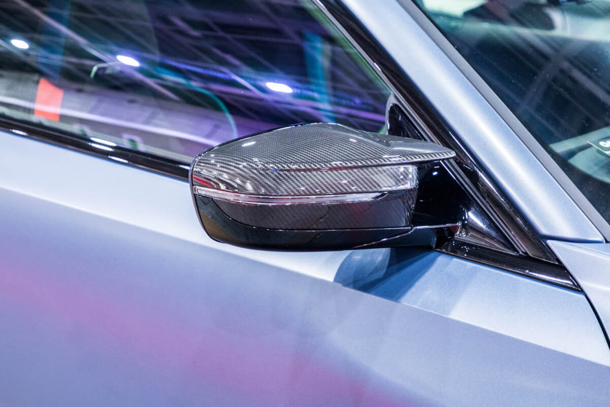 まずはブースの左端から見ていこう。最初に紹介するのは同社のデモカーであるG87型の「M2クーぺ」だ。end.ccのエアロにNext Innovationのアンダーリップを追加。グリルまわりはAUTO TECKNICのカーボン製をチョイスしている。
