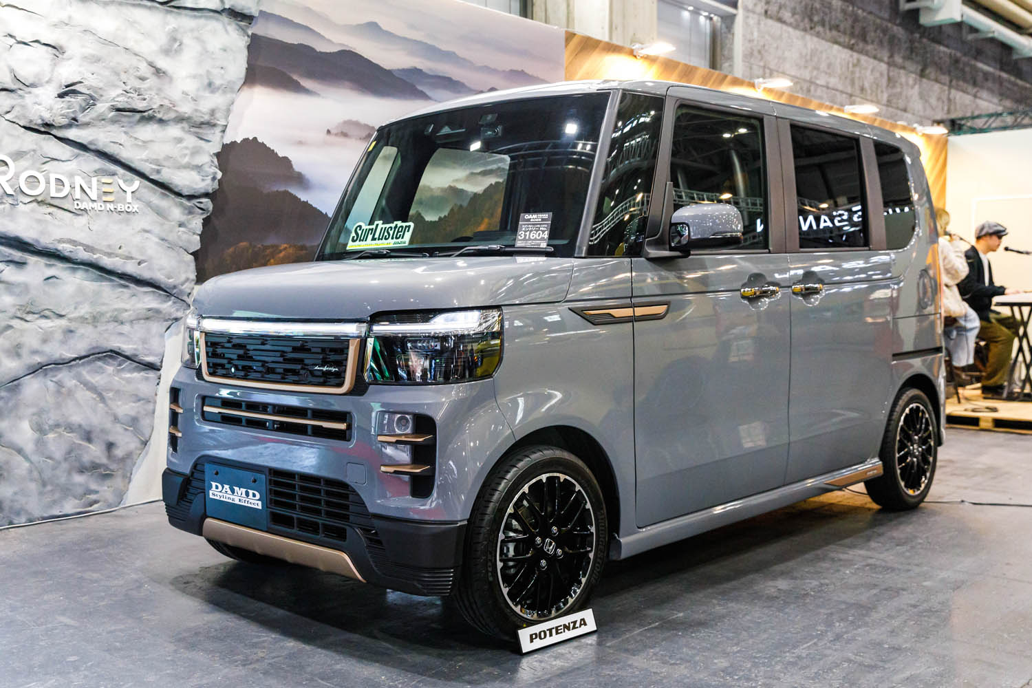 人気のホンダ「N-BOXカスタム」に、さらに高次元で解釈したスタイリッシュなデザインをプラスした「ロドニー」は、往年のDAMDらしさを現代風にアレンジしたスタイルを実現したもの。