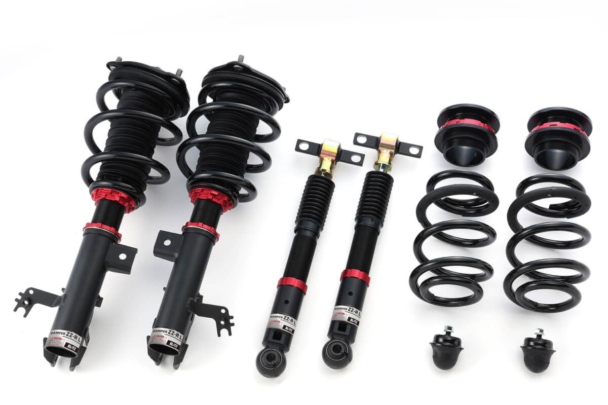 • BLITZ DAMPER ZZ-R L:耐久性に優れた特殊高張力材SAE9245オリジナルスプリングを採用。専用のバレル形状によりストロークの確保と、車種に合わせたバネレート・前兆により、さらなる乗り心地向上を目指している