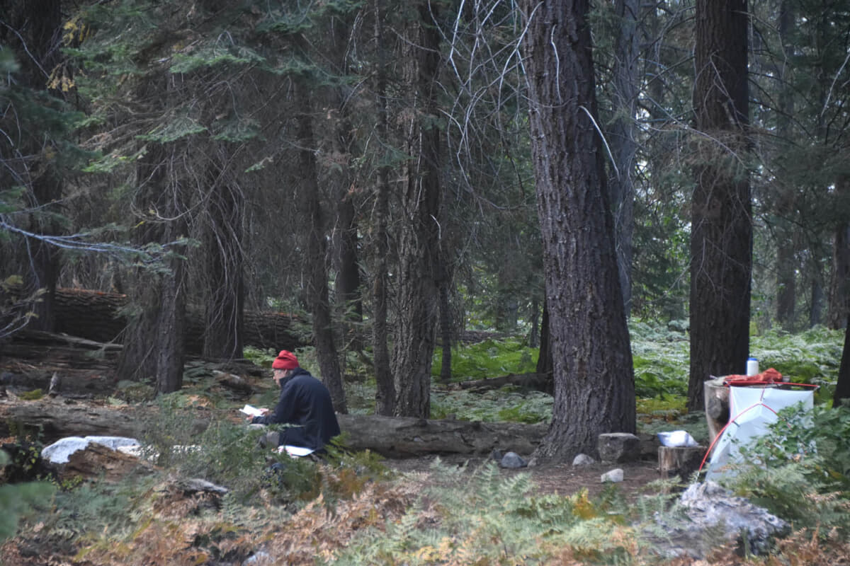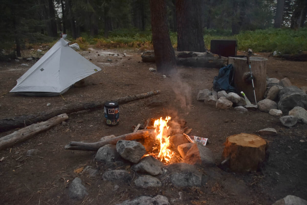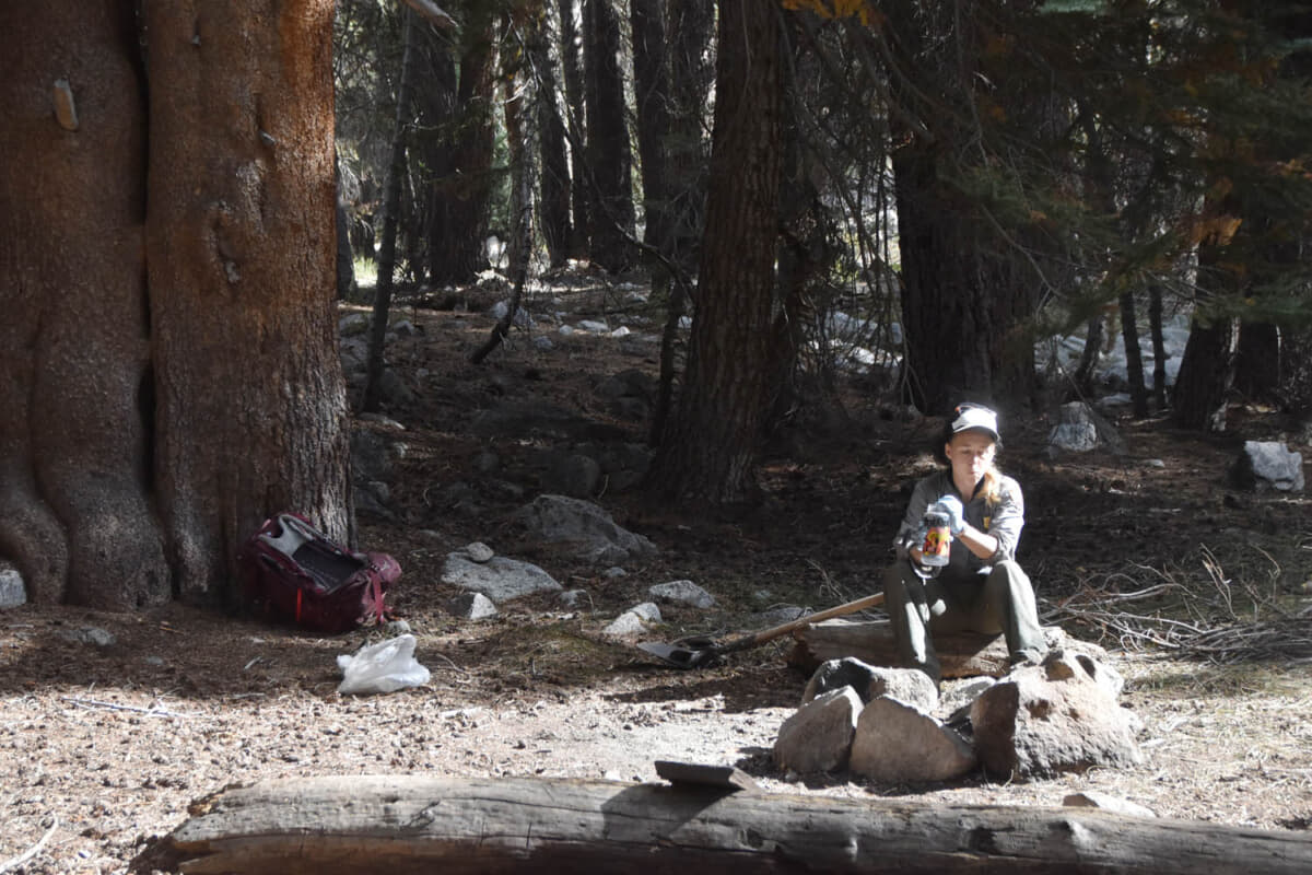 一人きりになった最初の日、川がすぐ横を流れるキャンプサイトにテントを張った。夜の焚き火のための枝を集めていると、女性レンジャーがファイアーリングのメンテナンスにやってきた。大きな石をどけ、シャベルを使って灰を掻き出す。30分以上かかる重労働だ。仕事を終えてひと休みする彼女に話しかける。