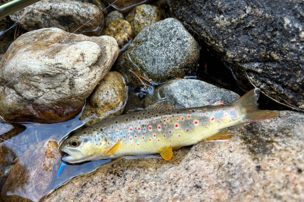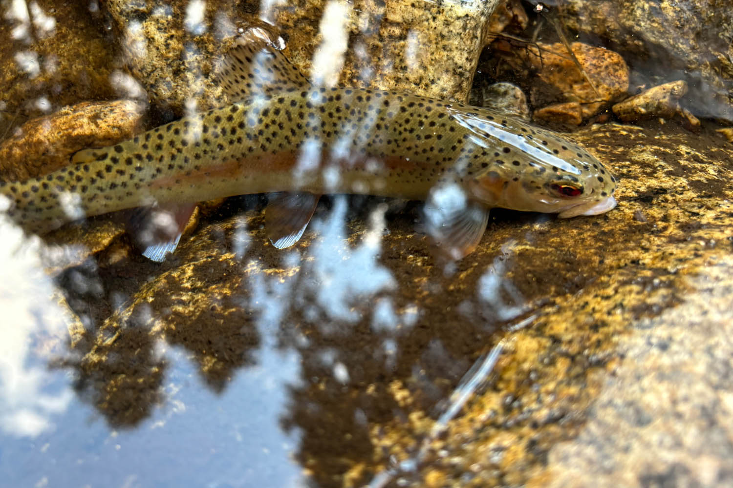夕方、釣竿を持って川に出た。瀬が浅く、難しいかと思ったが、1投目できれいなレインボートラウト(ニジマス)がヒット。ポイントを移動しながら2時間ほどで30尾近く釣ることができた。夕食のおかずに型がいい1匹だけをキープした。