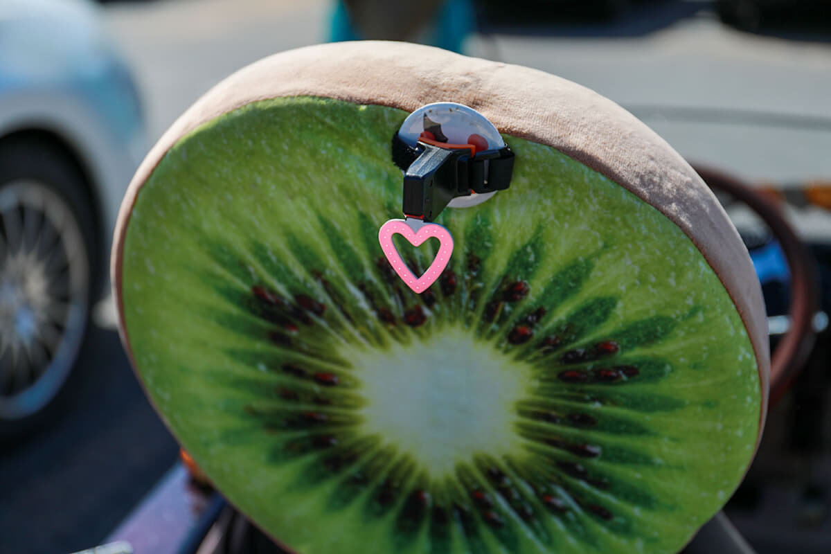 そのため、“しーぼん”さん自身も、合法で公道を乗り続けるために、視認性向上部品の設置(キウイのクッション)、夜間被視認性向上灯火器(クッションの後ろのハート型ライト)などを追加装備している。