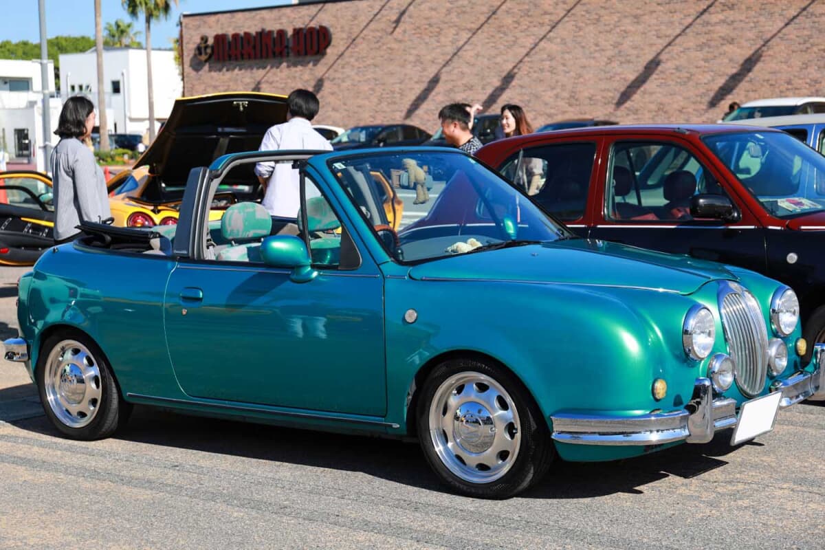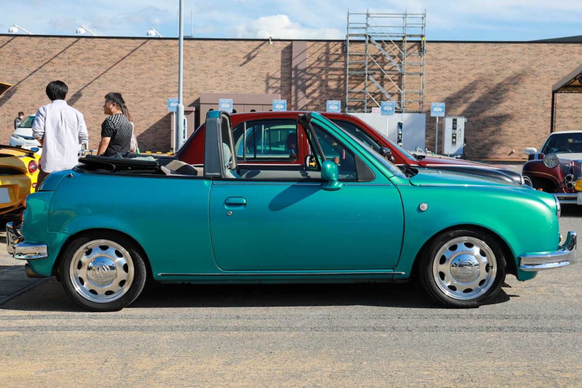 光岡「ビュート」の初代誕生は、1993年までさかのぼる。ベースは日産2代目「マーチ」で、セダン(4ドア/2ドア)、ハッチバック(3ドア/5ドア)、コンバーチブル(2ドア)、ロードスターと、マーチに合わせてそれぞれボディタイプが存在。しかも1000cc、1300ccと排気量違いの設定もあるため、非常に多くの仕様違いが存在する。