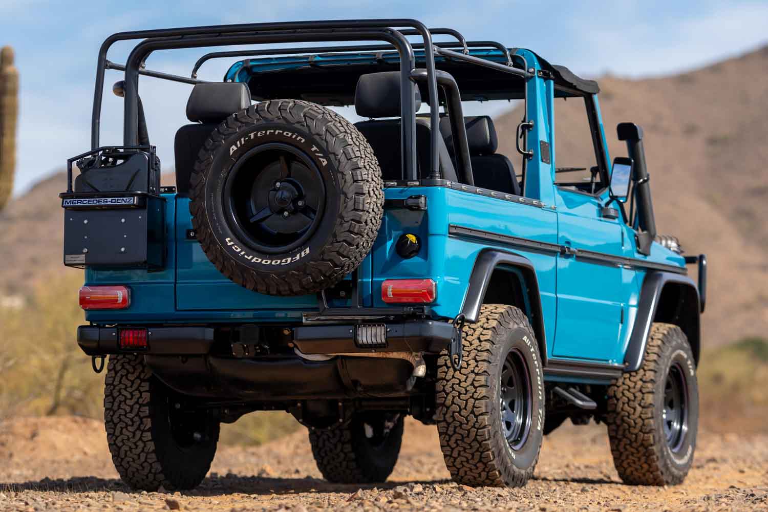 オークションに登場したウルフは、「250GD」をベースとしたもので、戦場を生き抜いたこのモデルが新たな命を得るためには、ニュージャージー州フレンチタウンのスペシャリストであるエクスペディション・モーター・カンパニーによる、2000時間以上のレストア作業が行われた。それはナットやボルトを最後まで取り外すという徹底したものであったほか、ボディは金属の地肌まで剥がされ、慎重にオリジナルの形状に戻された後、ブラックのアクセントカラーをあしらった、スカイブルーの塗装が施された。さらにはカラーキープされたグリルやヘッドライトの周囲、フロントスキッドプレート、フード下に備えられる緊急用のショベルなど、すべてが一流の仕事に徹している。