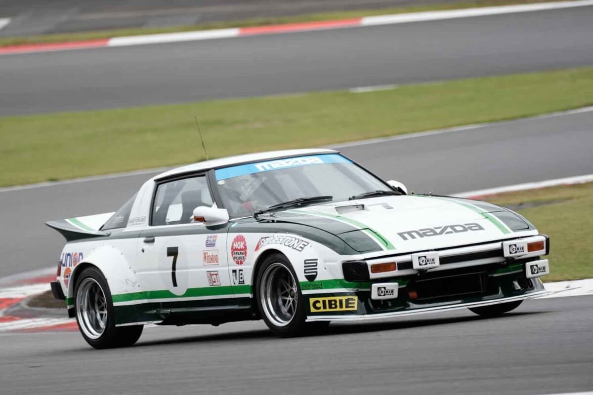 箱車の祭典の顔として毎回コースインしているヒストリックレーシングカーは複数あるが、1978年にデビューしたマツダ「サバンナRX-7」もその中の1台だ。RX-7は、RX-3の戦績や名声を受け継ぐピュアスポーツカーで、ヨーロッパ生まれのスポーツカーと比較しても遜色ない洗練されたプロポーションを特徴としている。