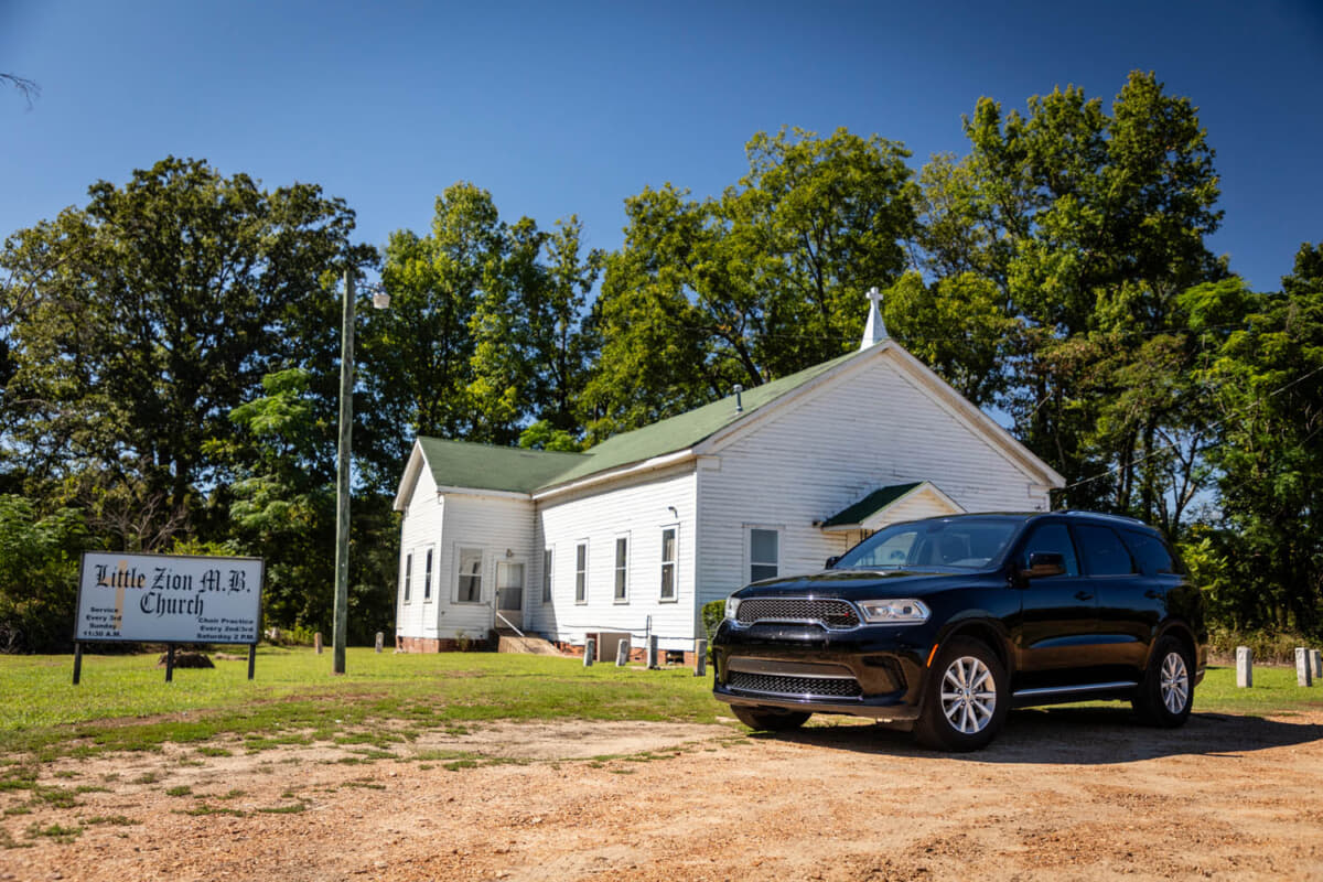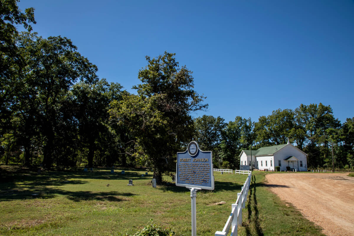 目的地のLittle Zion M.B. Churchは、ワインディングする田舎道の脇にひっそりと建っていた。ここからほど近いところにあった「スリー・フォークス」というジューク・ジョイントで、彼は毒をもられたとされている。