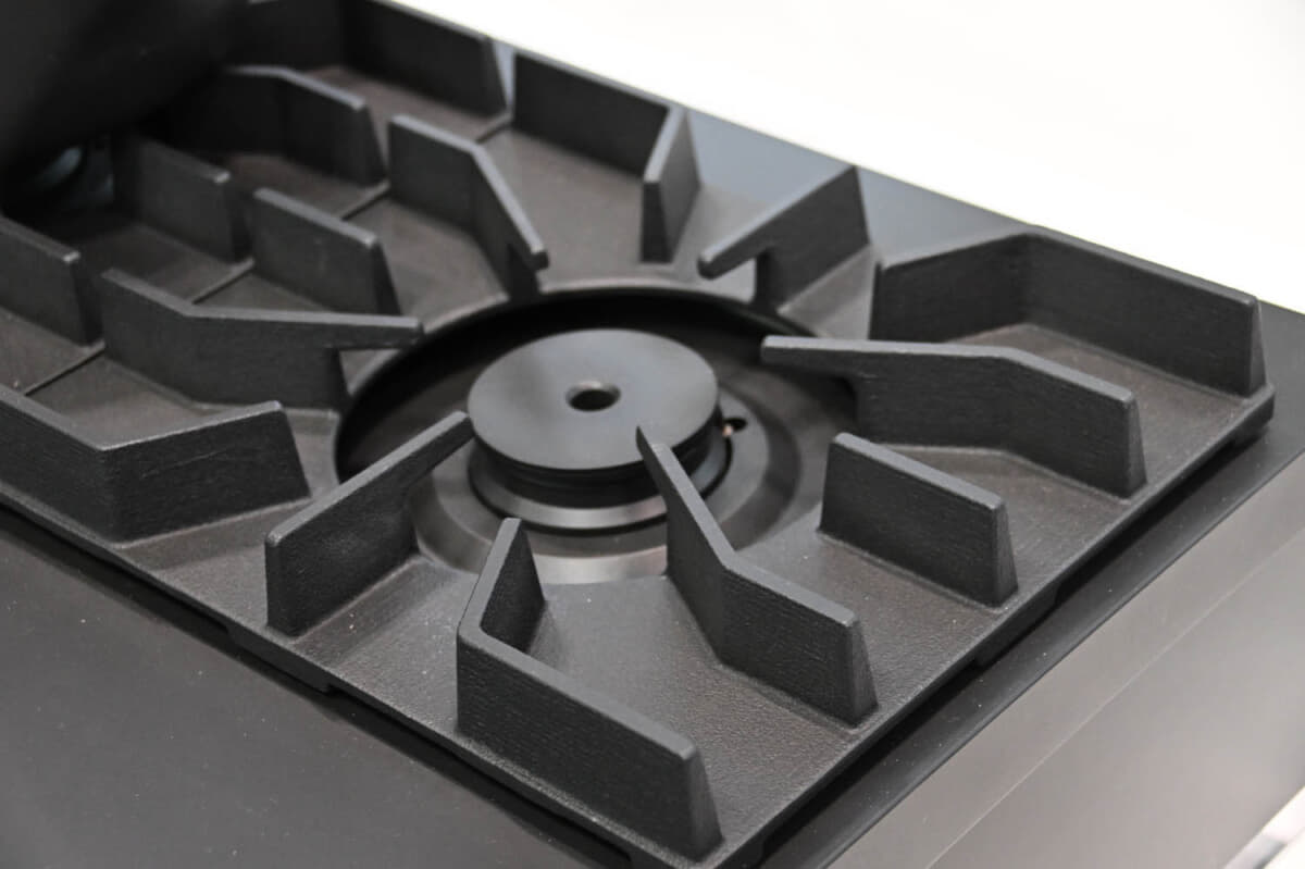 • 水素100%燃焼コンロ:五徳部分はトヨタが製造を担った鋳鉄五徳となっている。五徳の足は燃焼炎の部分にかかるわけだが、水素と酸素だけの燃焼のため、通常の五徳と異なる形状が採れるとしている
