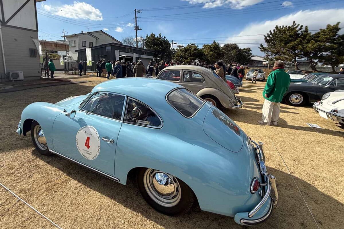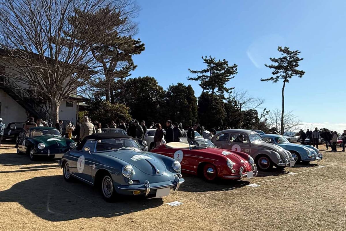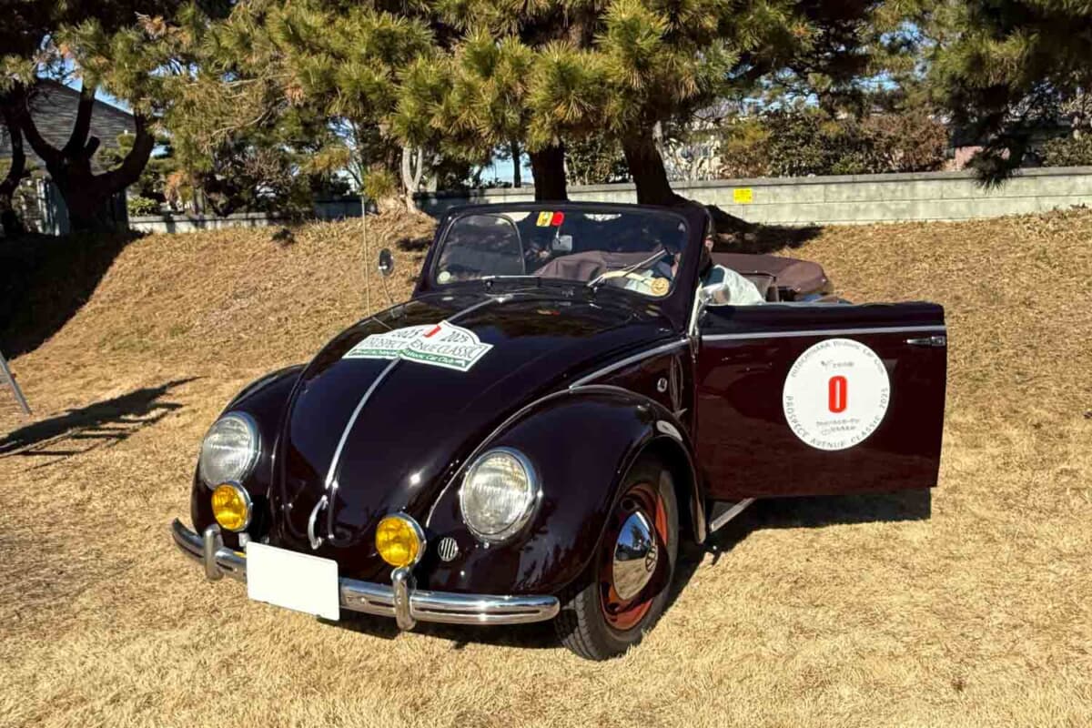 0号車は世界で約700台(諸説あり)しか生産されず、現存するのはわずか数十台のフォルクスワーゲン「ヘブミューラー カブリオレ」。VWの歴史の中でも超レアなモデルよ。1号車は、主催する森田理事長がドライブする1960年式のポルシェ「356 ロードスター」。森田理事長は356コレクターとして知られているため、今回も参加車はポルシェが多いのですよ。