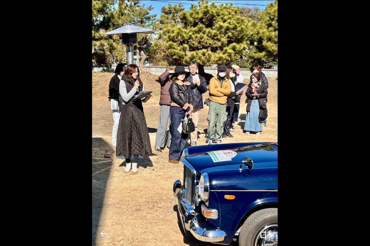 ほかのクラシックカーラリーと大きく違うのは、森田記念会が運営費の大半を賄うため参加費がリーズナブルで参加しやすい一方、30台限定という狭き門のため、参加したくても人気でなかなか参加できないこと。今回も30台弱でラリーはスタートです。