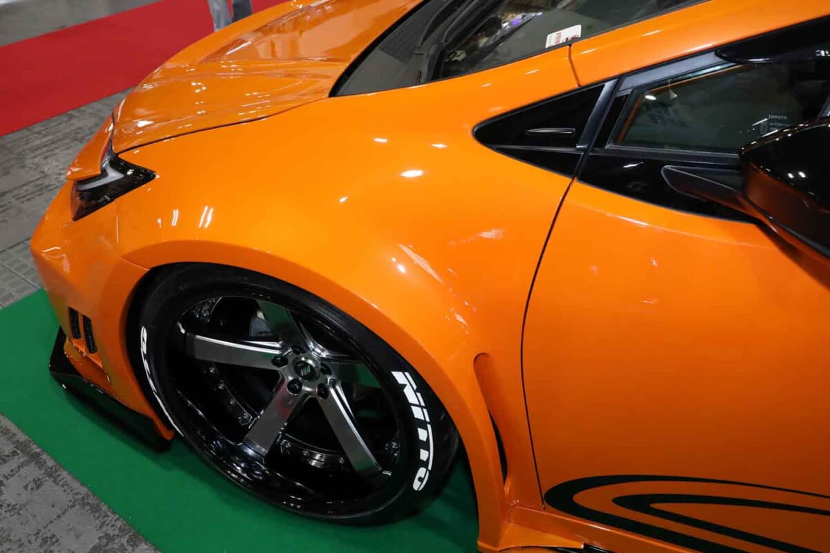 • トヨタ プリウス:ボディカラーはホンダ「NSX」の純正色であるオレンジにオールペンしている