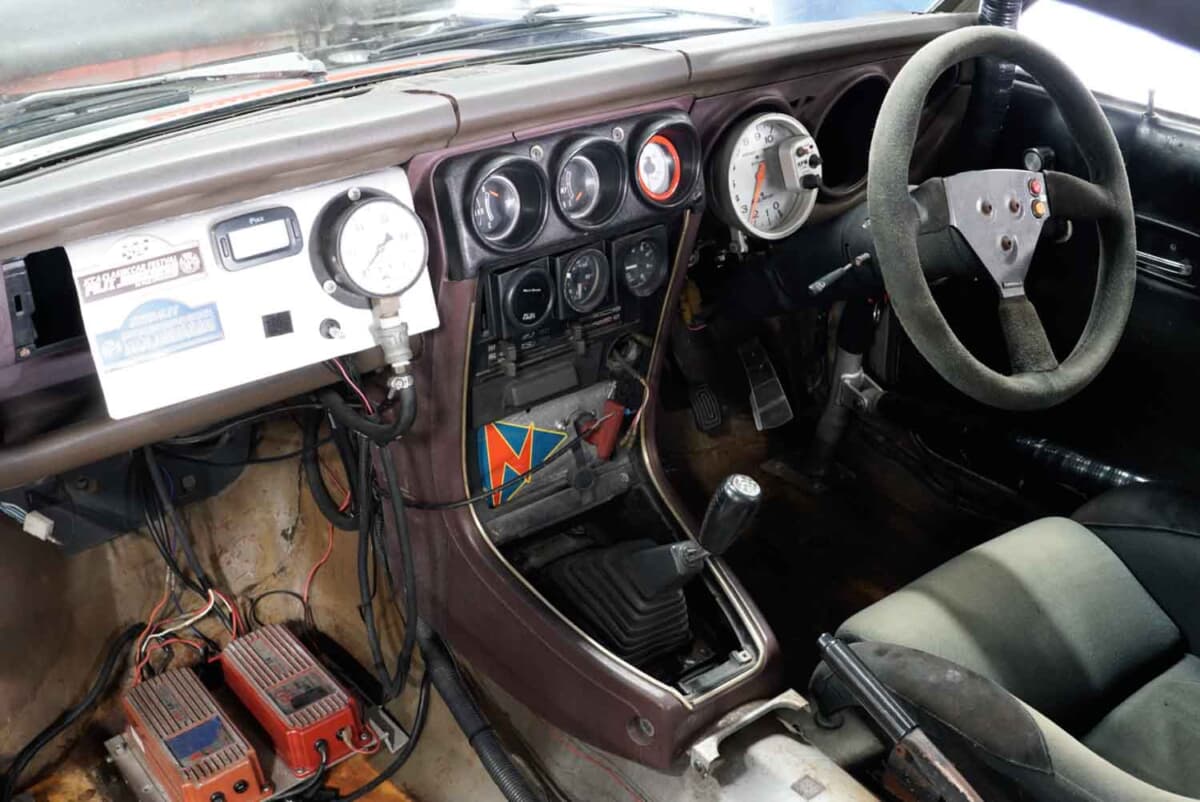 • マツダ サバンナRX-3 1974年 富士スーパーツーリングレース 寺田陽次郎仕様:車内もレーシーな装備で造り込まれている