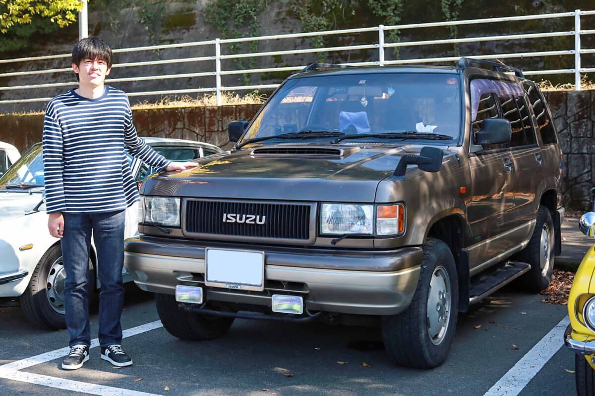 2024年11月3日に福岡県朝倉市あまぎ水の文化村で開催されたいすゞスバルプラス オーナーズミーティング2024にいすゞ「ビッグホーン」で参加していた“TOMO”さん。現在の愛車は幼少期からずっと家にあったファミリーカーだという。1992年に父親が新車で購入したその車の時、“TOMO”さんは小学2年生。それからずっと家族の生活を支えてきたビッグホーンを、14年前に自らの愛車として迎え入れた。40歳になる“TOMO”さんは26歳の頃に父親から譲り受けて、それ以来ずっと乗り続けている。