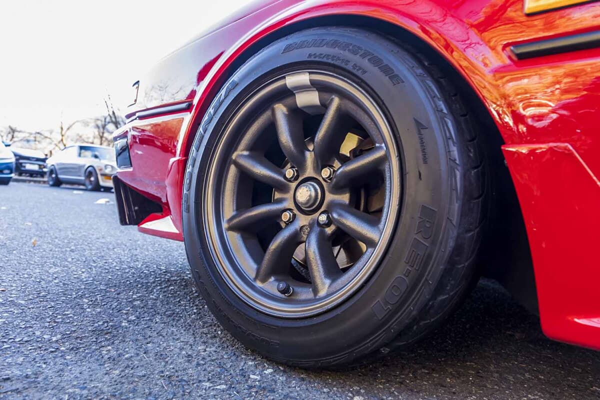 足まわりは、フロントにワンオフの車高調をセットし、リアにはホンダ「オデッセイ」用を加工流用。ホイールはワタナベを選び、フロント15×7.5J+8.5、リア15×8J+3という理想のサイズにたどり着いた。タイヤはブリヂストンのポテンザ RE-01をチョイスしている。
