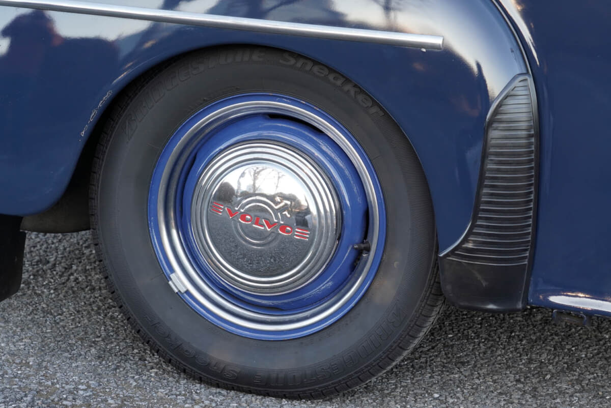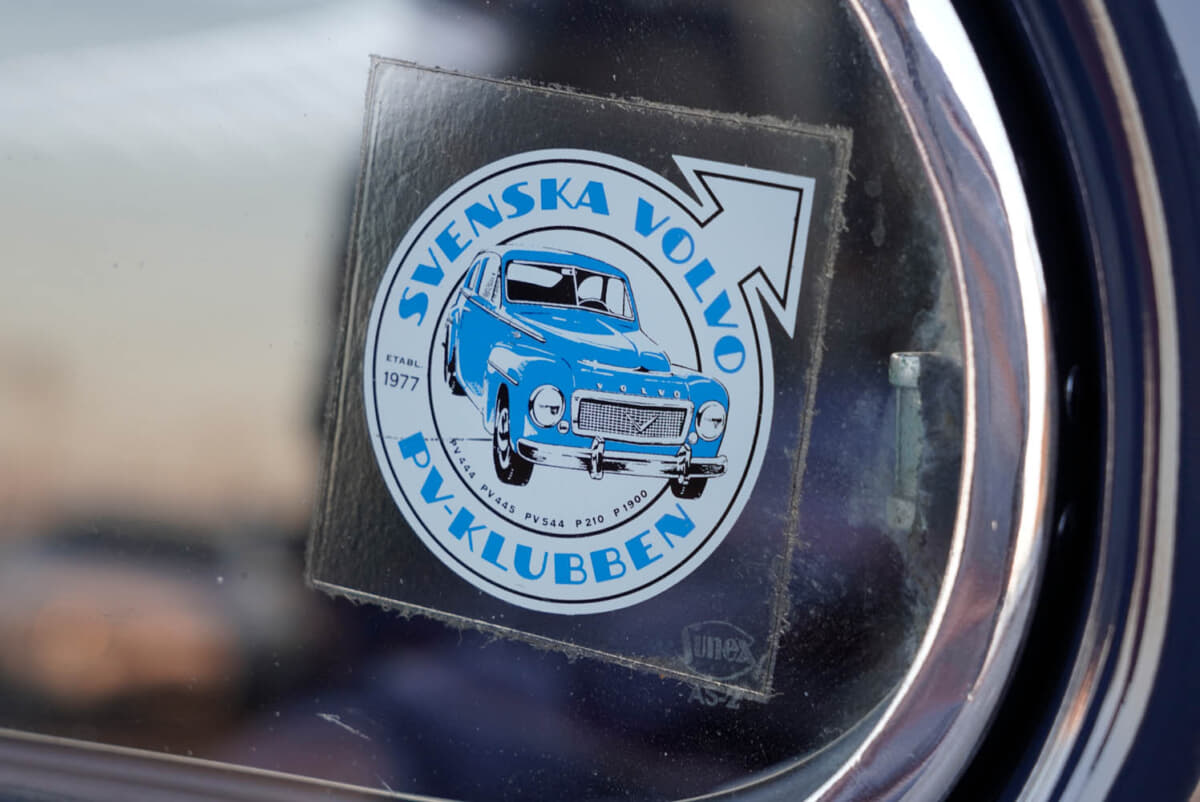 しっかりと磨きこまれた濃紺のボディが輝きを放つクラシック・ボルボ。イエローバルブのフォグランプもその重厚感をさらに際立たせている。ラリーモディファイされ、フロントグリルには所属クラブのバッジが並び、往時のラリー出場車の佇まいを見せる。