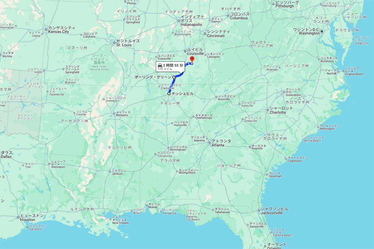 2024年の8月末から、アメリカをミシシッピ川沿いに南北縦断して音楽の歴史をたどる旅に出ることにした筆者。ブルースの故郷である「ミシシッピ・デルタ」を仲間と4人で巡った後は、ひとり旅。ニューオリンズのハーツレンタカーで借りたキア「スポーテージ」を“キムさん”と名づけて相棒とし、ミシシッピ川流域を北上。テネシー州のメンフィスをナッシュビルを訪れて、今度はケンタッキー州へと向かいます。