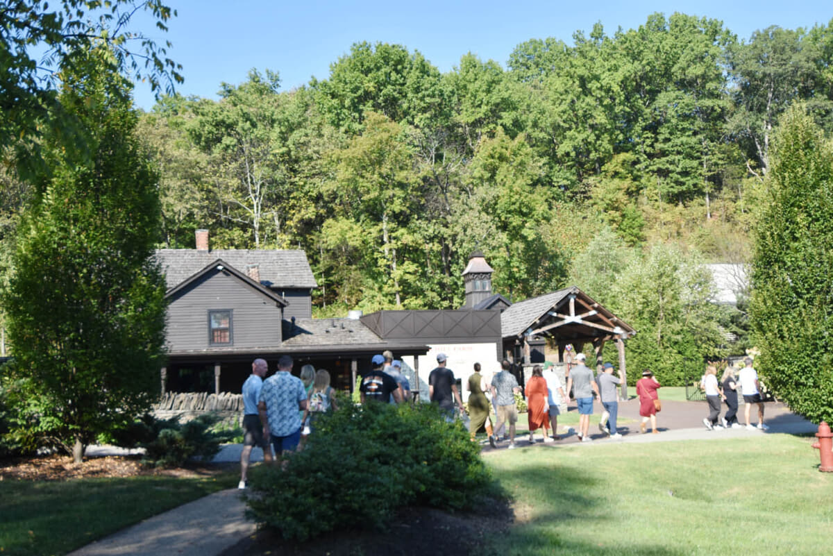 緑豊かな敷地に建て屋が点在し、自然の中での生産を大切にしている。それは森が石灰質の土壌を守り、健全な土壌がミネラル豊富な水を生む、という理念に基づく。こんな静かな環境でウイスキー作りに携わるのもいいな、としみじみ思った。それにしても、ツアーは盛況だ。1グループ20人のツアーが20分間隔で出発する。土産物屋もレジが混雑するほど活気がある。ビジネスにも貢献しているに違いない。