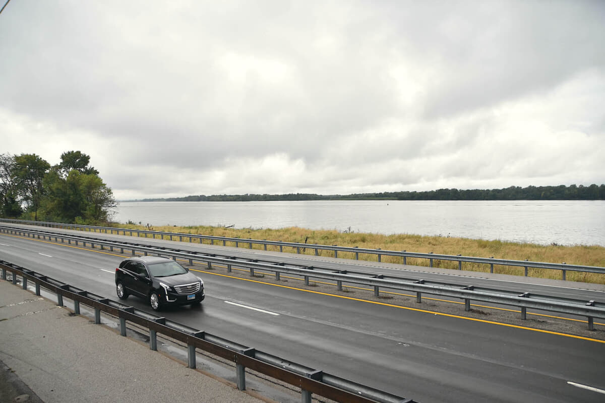 • ミシシッピ川を見ながら走れるのは、この区間のみ。あいにくの曇り空だった
