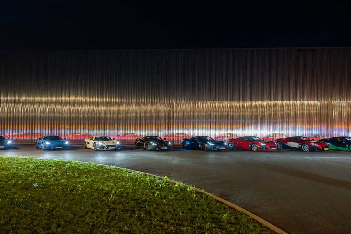 リマック ネヴェーラ トレイルブレイザーズ ツアーは、リマック・キャンパス(同社のグローバル本社)の詳細な見学からはじまり、「ネヴェーラ」に込められた技術と職人技を舞台裏から紹介する内容であった。その後、ザグレブの歴史あるエスプラネード・ホテル前にて展示が行われ、9台のネヴェーラが一堂に会した。ブガッティ・リマックのマテ・リマックCEOも、自身のネヴェーラでほかのオーナーたちとともに参加した。