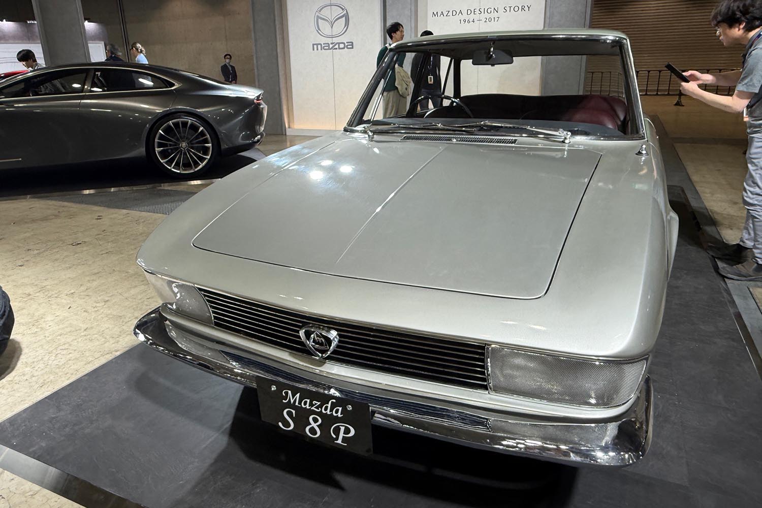 たとえばマセラティは、ジウジアーロさまがデザインしたマセラティ「ギブリ スパイダー」と、最新のオープンモデル「グランカブリオ」。マツダは、初代「ルーチェ」のプロトタイプ「S8P」を展示。これもジウジアーロさまがベルトーネ時代に手がけたものよ。ここから最新のマツダデザイン「ヴィジョン クーペ」へとつながっているの。
