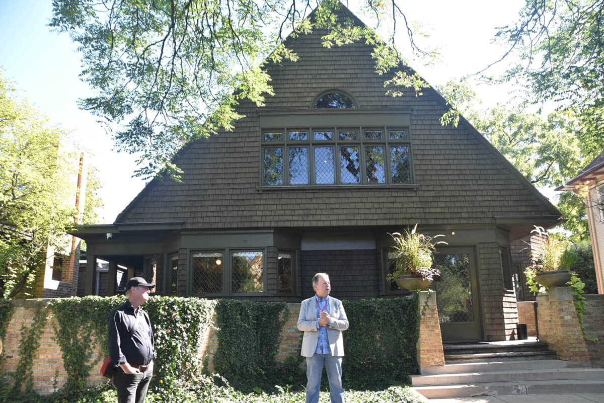 • ライトが住んでいた家が博物館になっている。中央がツアーガイド。周辺にはライトの作品がいくつもある