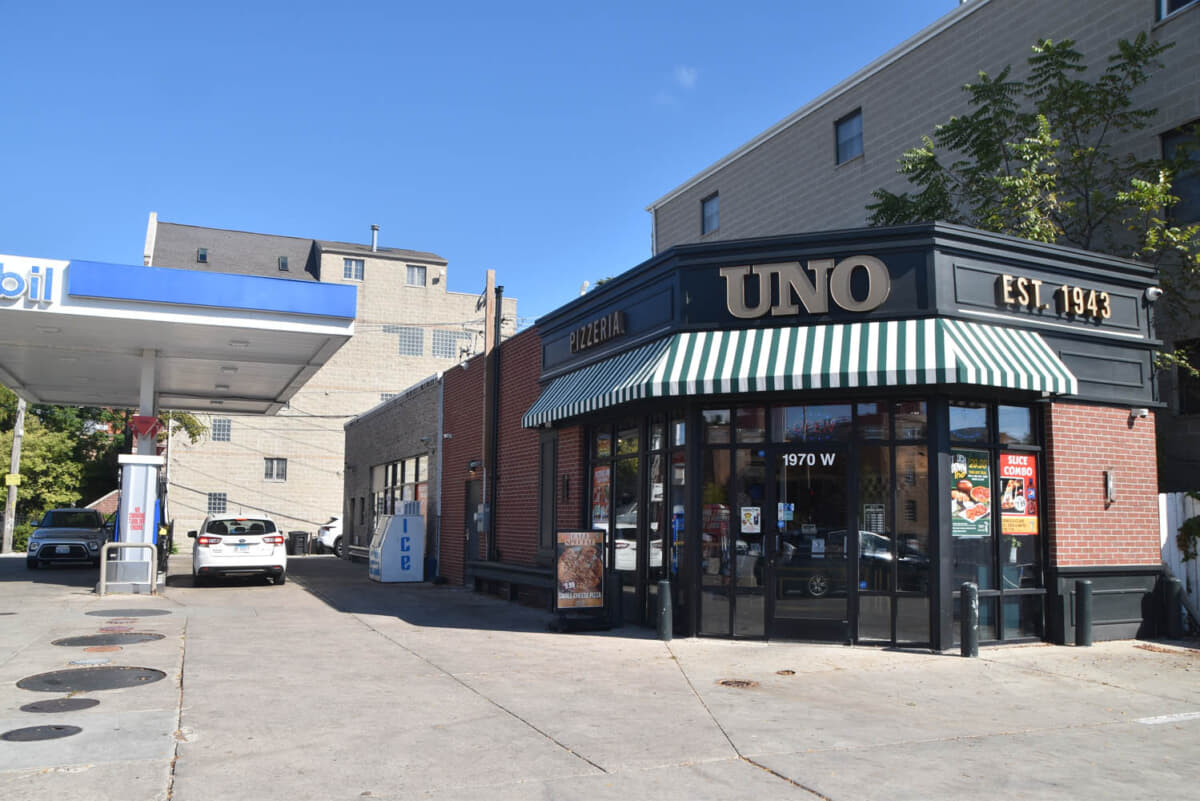 • ピッツェリア・ウノ リバーサイド店。意外にもガソリンスタンドの一画だった