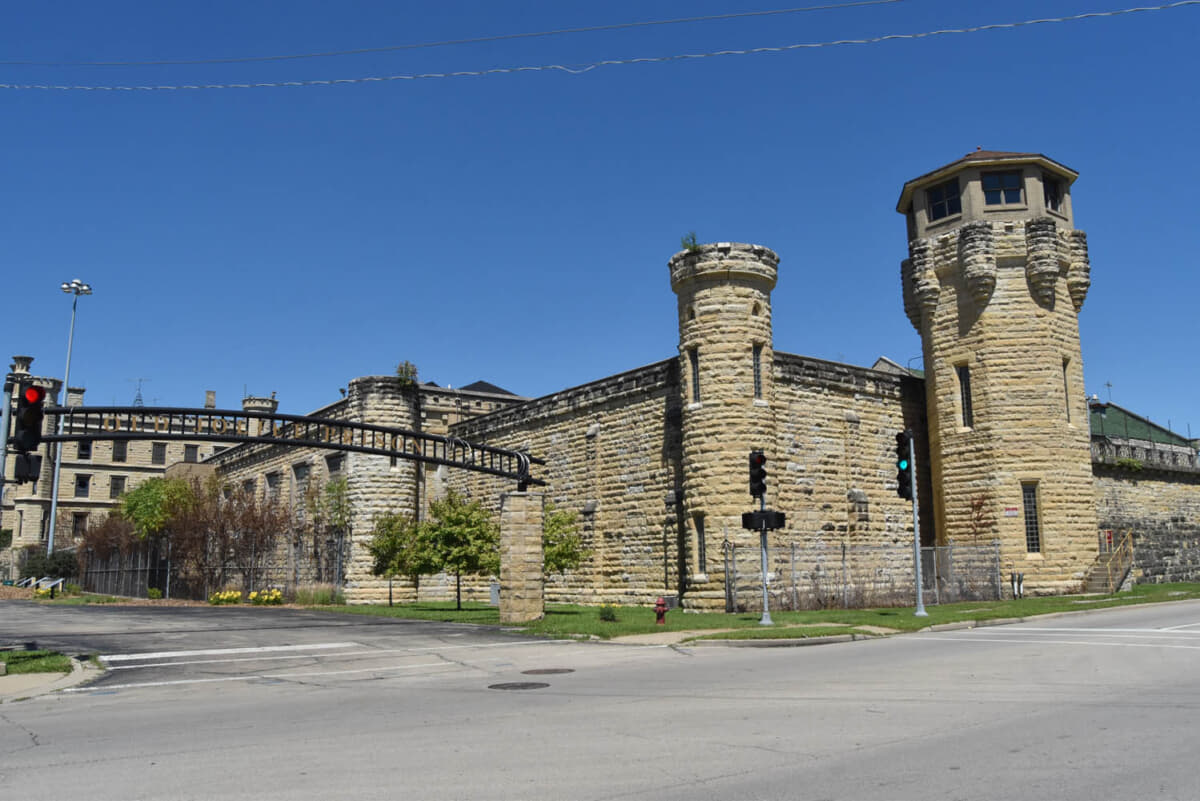ジョリエットのダウンタウンに着くと、ちょうどインフォメーションセンターが閉まりかけていた。駆け込んでみると、ビッグなサプライズが待っていた。なんと、ブルース・ブラザースのふたりが踊っているではないか! ジョリエットは映画『ブルース・ブラザース』の舞台でもあったのだ。話を聞くと、ジョン・べルーシが出所する冒頭シーンを撮影した刑務所が残っているという。翌朝、行ってみると石造りの歴史的建造物で、またびっくり!