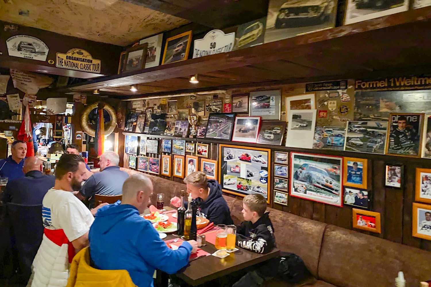 チームやドライバーにご挨拶をし、新しいカラーリングのマシンを撮っているうちにあっという間に夕暮れ時に。時間を忘れてパドックを歩きまわり、お腹もペコペコです。日本からいらした方がニュルブルクリンクに来られたのは2018年以来で、その際にも訪れたという有名なレストラン「ピステンクラウゼ」へ向かいました。