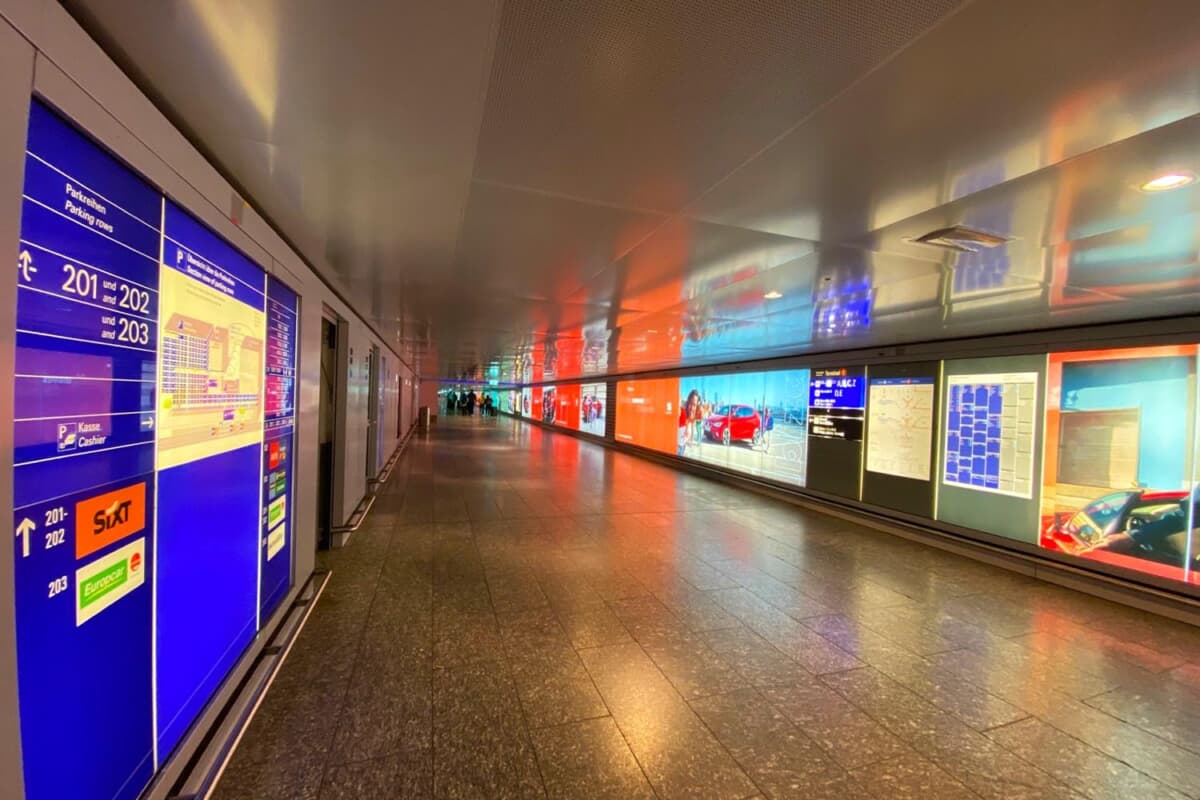 • フランクフルト国際空港のレンタカーパーキングへの道のり。SIXT(シックスト)は一番奥でひたすら歩きます