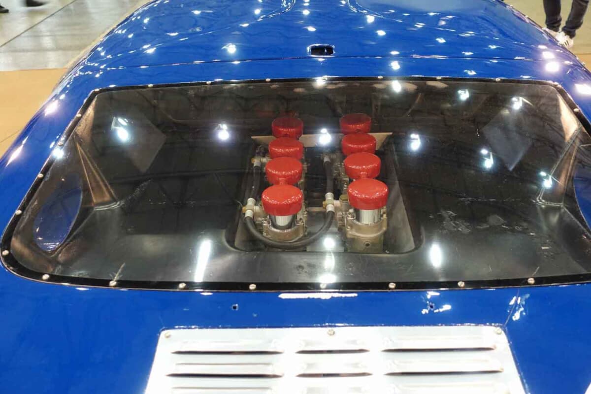 オートモビルカウンシルにはハリブランドのホイールを履かせて展示されていたが、オーナー曰く、元々履いていたボラーニのワイヤーホイールのレストアが間に合わずに、ハリブランドを履かせたとのことで、ちゃんとボラーニのワイヤーホイールもお持ちだとか。