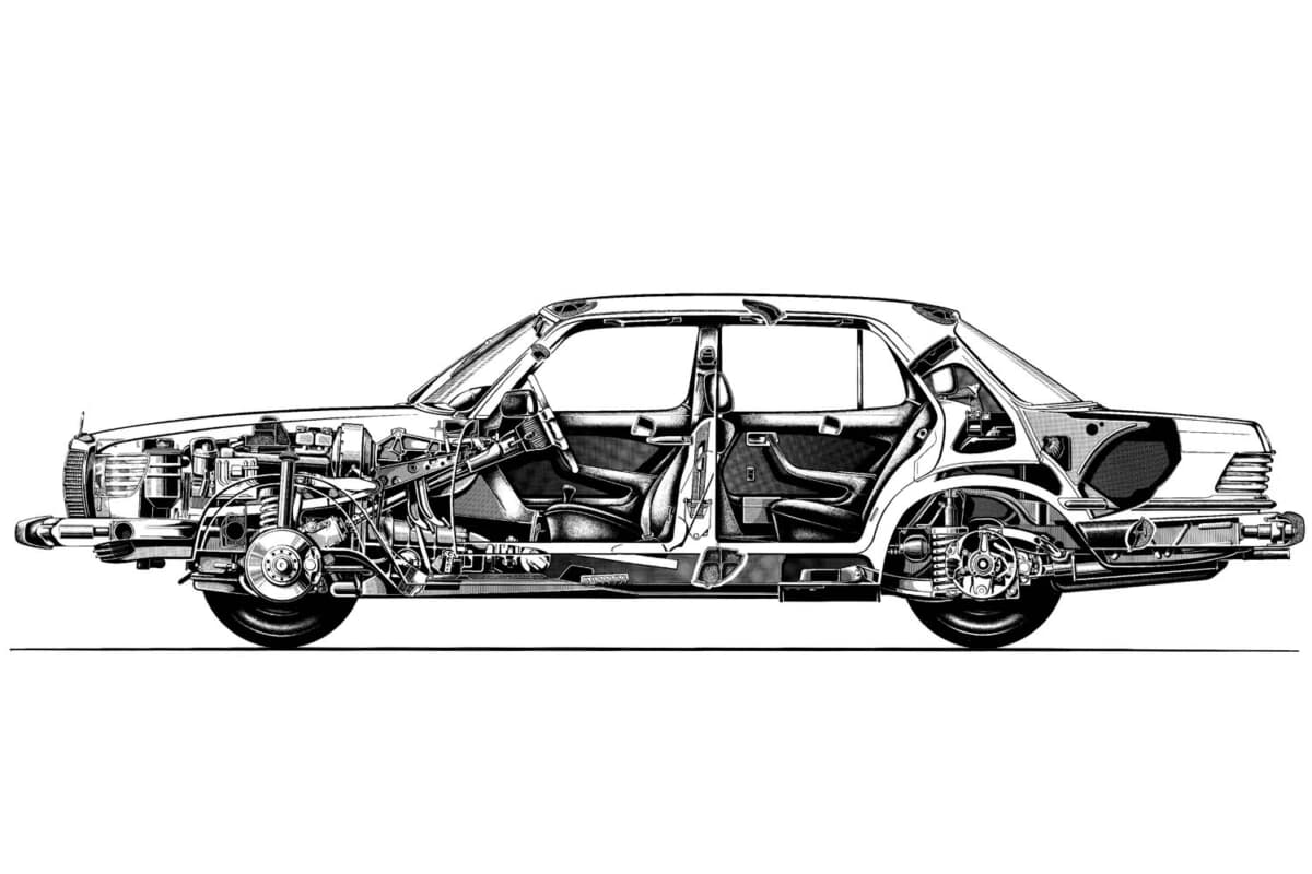 • ESF 24の透視図。Sクラス/W116とあまり相違がないことがよく分かる