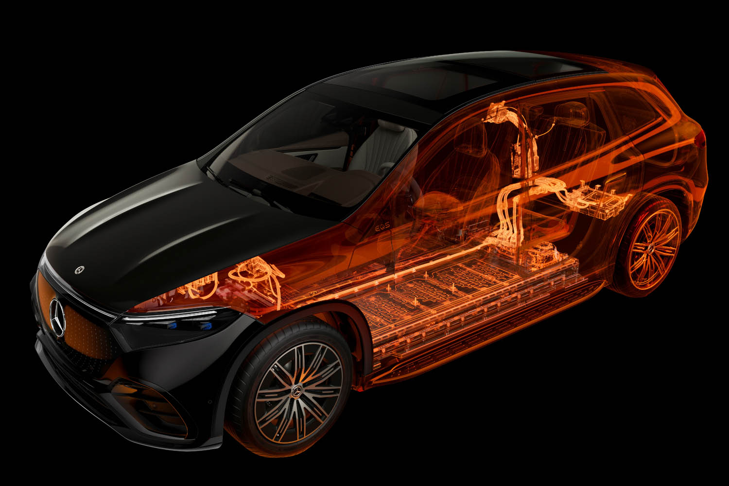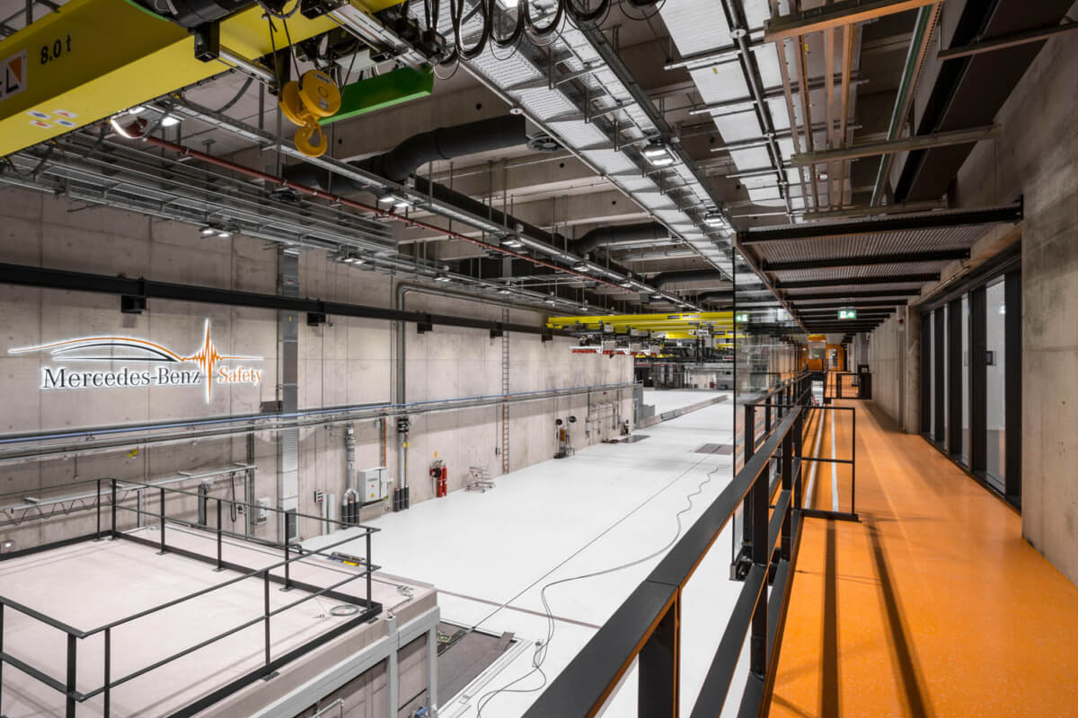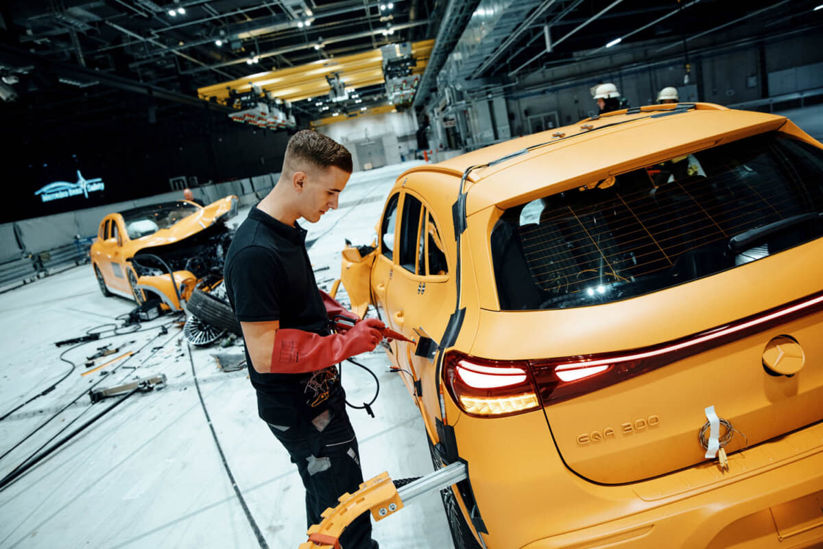 しかも、メルセデス・ベンツはBEVでも安全性のパイオニアである。2023年10月、メルセデス・ベンツは2台のBEVのフロントオフセット衝突を公に世界で初めて実施している。「EQA」と「EQS SUV」は実際の事故シナリオに則ってそれぞれが56km/hで走行し、50%が重なり合う形での正面衝突テストを実施した(2016年に完成したジンデルフィンゲンのメルセデス・テクノロジーセンター内)。