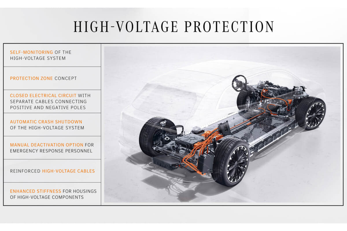 メルセデス・ベンツは新しい「Defining Electric Safety」キャンペーンを通じて、全電動モデルの安全機能に焦点を当て、BEVにおける感電や高エネルギーの短絡のリスクを防止するため、多段高電圧(HV)安全コンセプトを開発した。