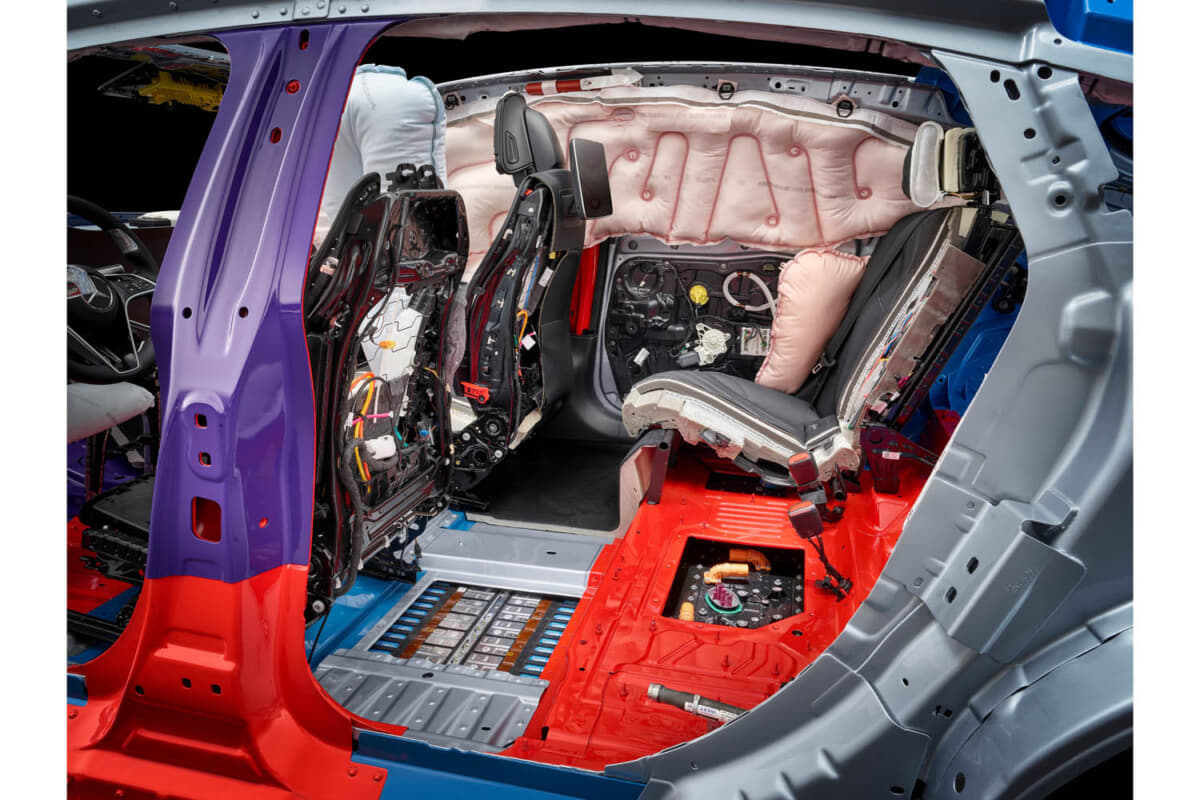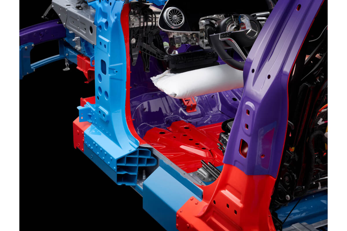 また、設計者は全てのHVエレメントを車両の衝突防止領域に配置し、車両のフロアにあるバッテリーを保護する。とくにEQSのドアシルには、大容量のアルミニウム押し出し材が使用されており、安定したバッテリーケースと他の対策の組み合わせにより、高電圧バッテリーの事故安全性が高くなっている。