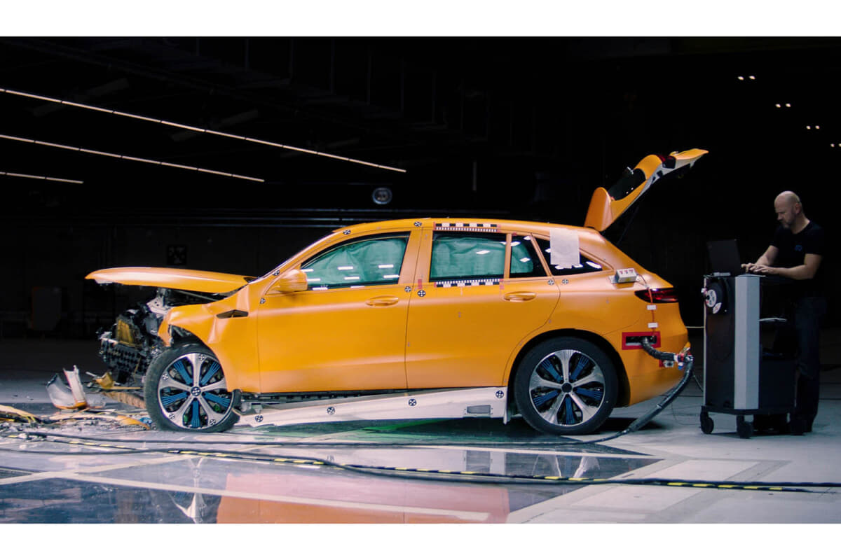 2台の「EQ」を衝突テストしてEVの安全性を実証
