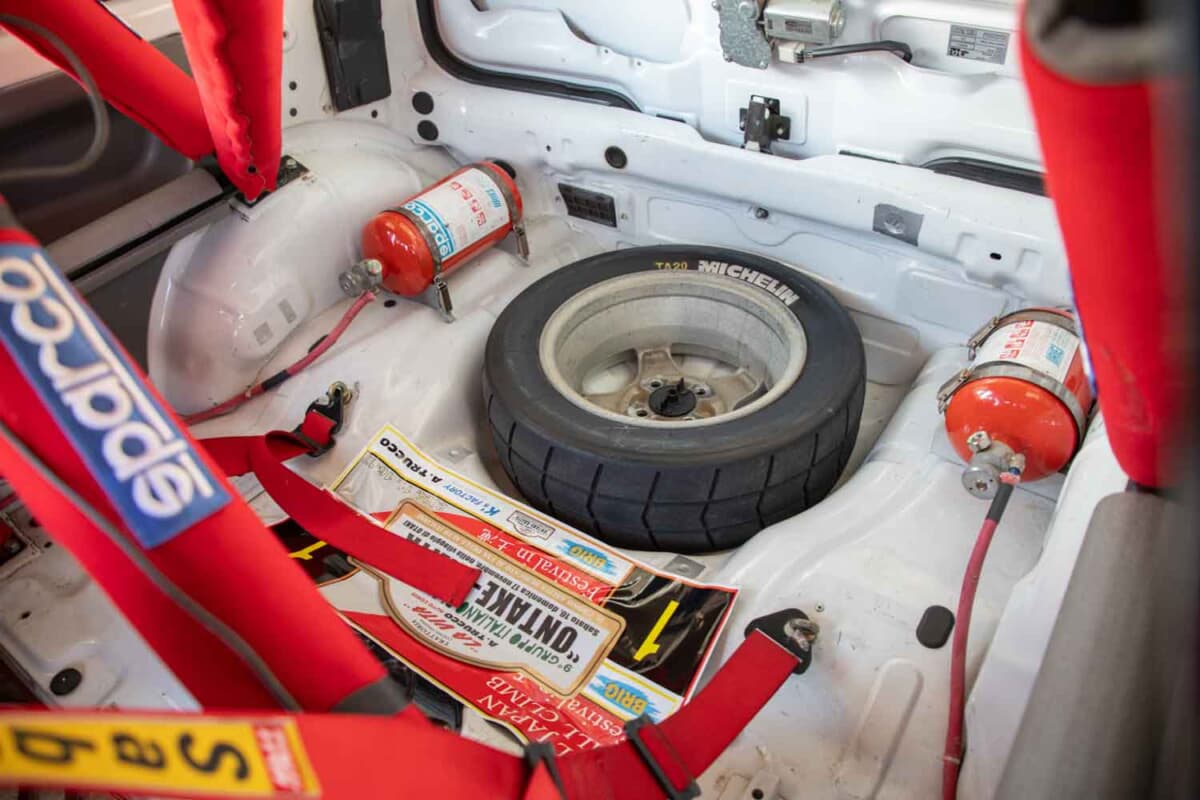 また、サスペンションも締め上げられてラリータイヤ用セッティングが施されたうえに、遮音材や内装材が取り去られたこともあり、車両重量は800kgまで減らされていた。