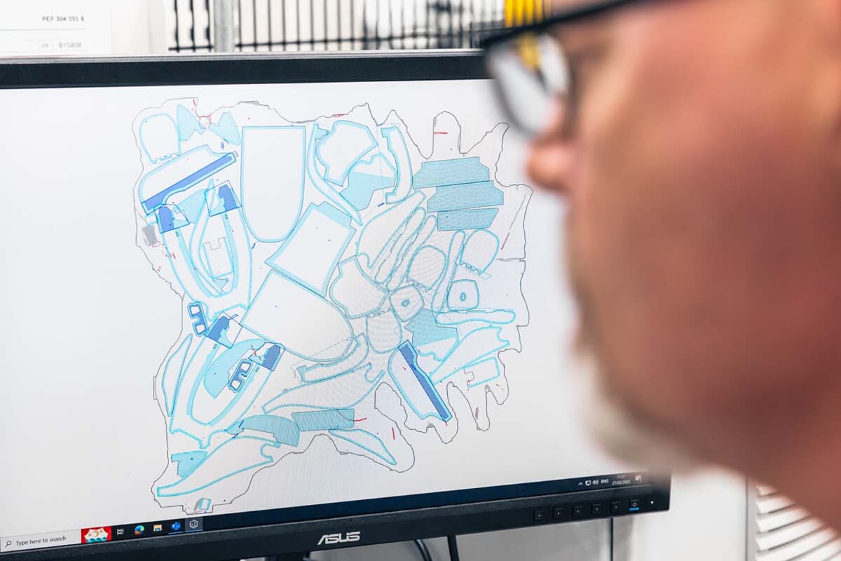 新しい皮革検査システムは、複数の皮革を同時に検査できるため、処理速度の向上にも寄与。このプログラムは既存の裁断工程と連動しており、1台あたり200点を超えるトリムパーツに使用されるレザーの最適化を実現する。これにより廃棄物とCO2排出量が1台あたり135.7kg削減され、ビヨンド100+戦略をさらに支えるものとなっている。