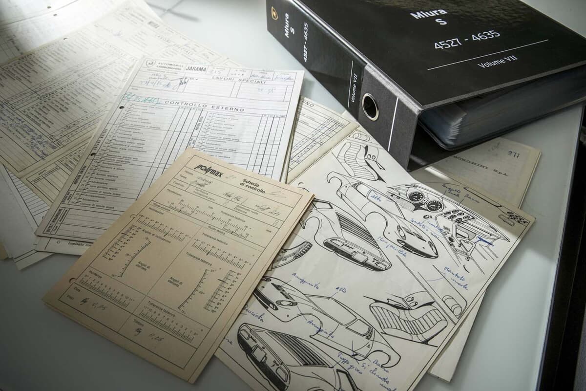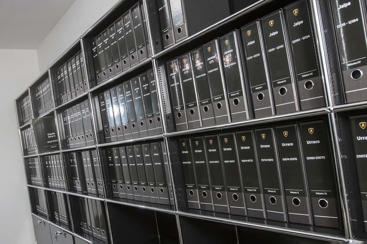 2015年4月16日に発足したランボルギーニ・ポロストリコは、それまで異なる部門に保管されていた同社の全歴史的記録の一元化とデジタル化から活動を開始した。カタログ化された項目には、技術図面、製造表、型式認証文書、オリジナル資料、歴史的画像、販売・管理文書、会社の公式出版物などがあり、体系化された権威ある歴史的アーカイブの作成に貢献した。同時に、本社に特別な技術部門が設置され、専門チームが部門の正式立ち上げ直前の数カ月間、ヒストリックカーの修復作業を開始した。