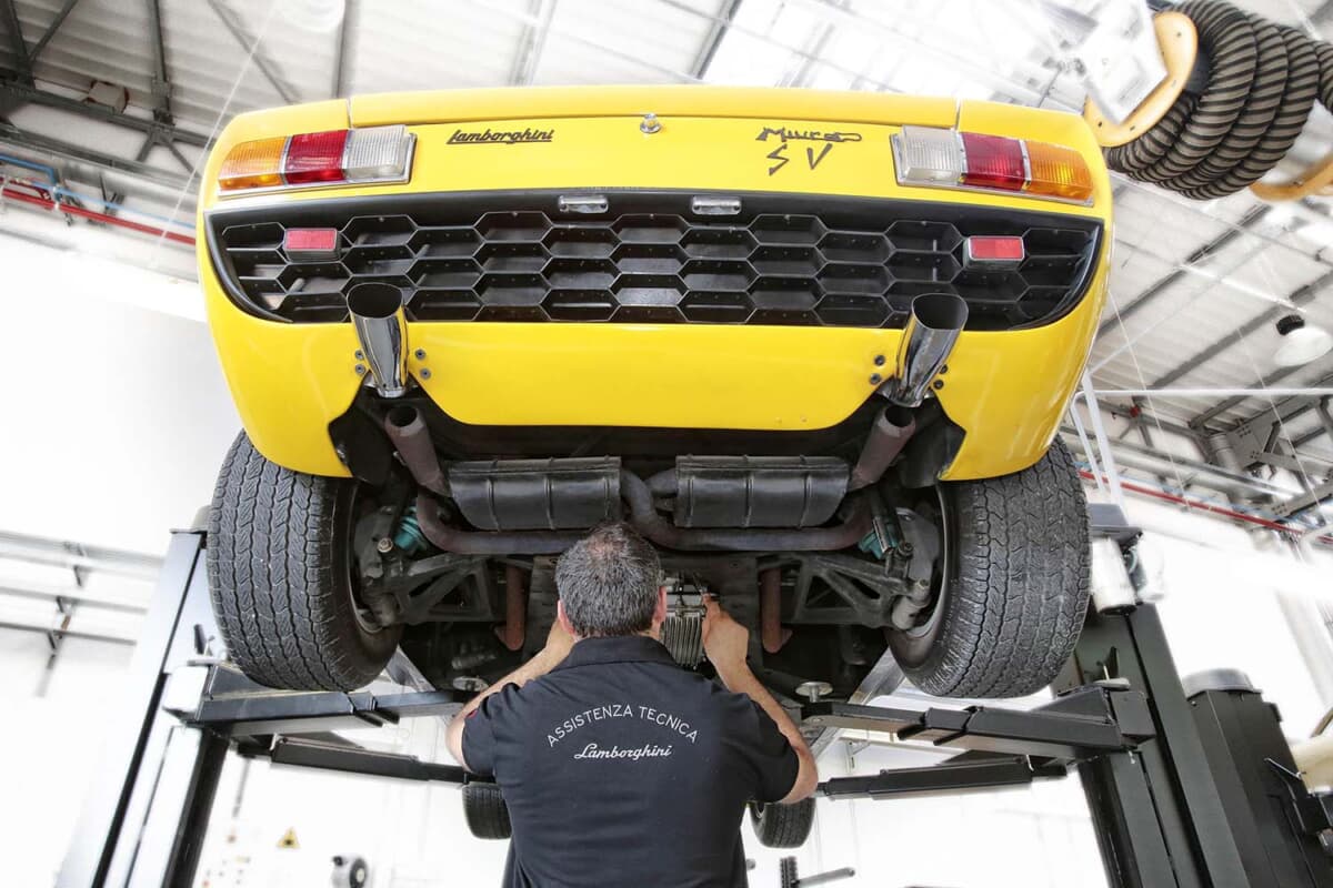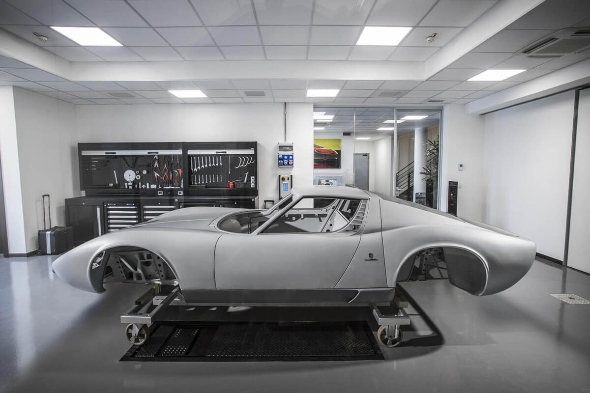 最初のフルレストアとなったシャシーナンバー0121の「350 GT」は、ランボルギーニが初めて生産した車のひとつであり、ボディとインテリアに1150時間、機械および電気系統のチェックに780時間が費やされた。