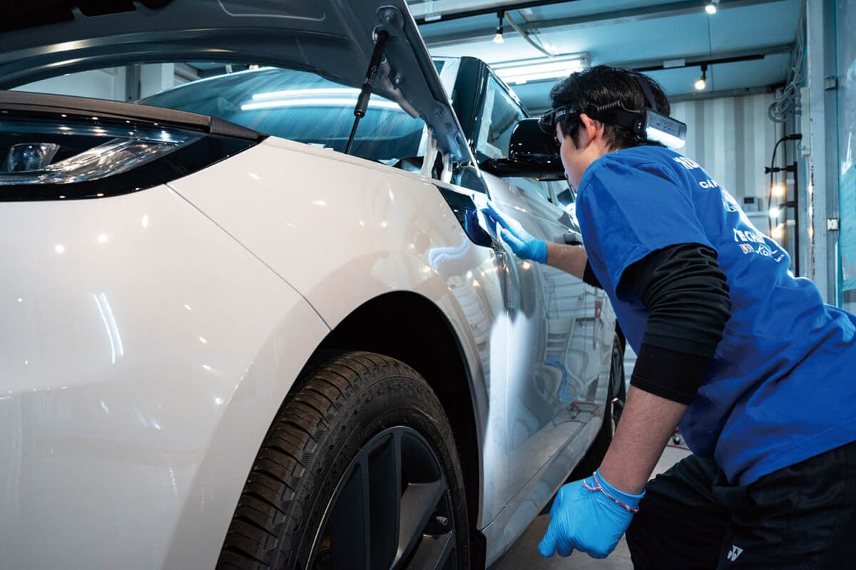 • クルマの塗装状態を判断して、徹底した下地処理で最適なボディに仕上げる。そのうえで「タイプWF斬」や「KF8」といったおすすめのコーティングを施工