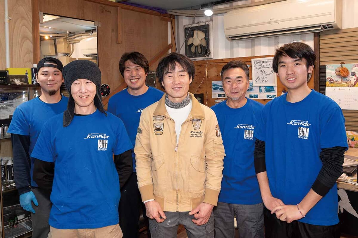 CBF仙台コンフィードは技術力への探究心が半端ではなく、藤田社長を筆頭にスタッフが高いスキルを持つのが魅力だ。下地処理ではただキズを消すのではなく、塗装状態をしっかり理解して肌改善をし、コーティングの効果を最大限に引き出す。そのうえで「タイプWF斬」や「KF8」といったおすすめのコーティングを施工。どちらもボディの上を水が綺麗に流れていく。