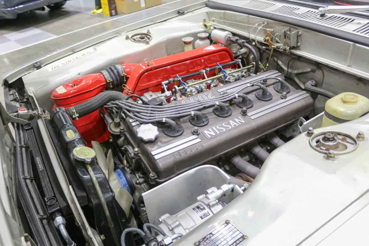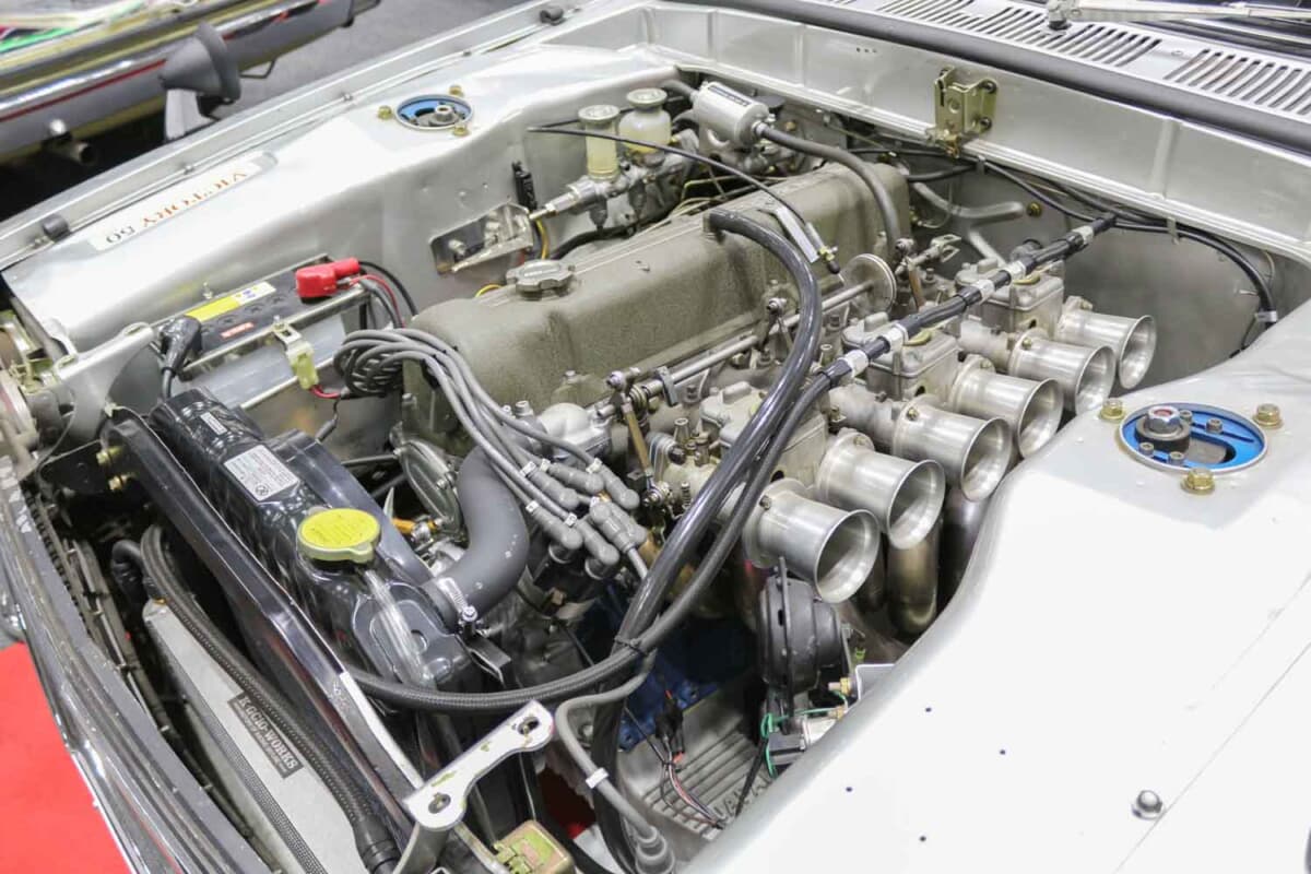 ブースに展示されたもう1台は1969年式のスカイライン2000GT-R。S20型エンジンは絶好調のようだ。純正オリジナル3型ソレックスキャブレターをオーバーホールしてあり、タコ足も純正オリジナル。マフラーはオールステンレスデュアル仕様となっていた。電動パワステ、電動クーラーを装備しているので、快適街乗り仕様になっているとのことだった。