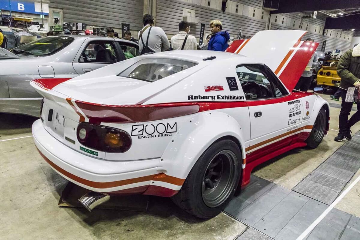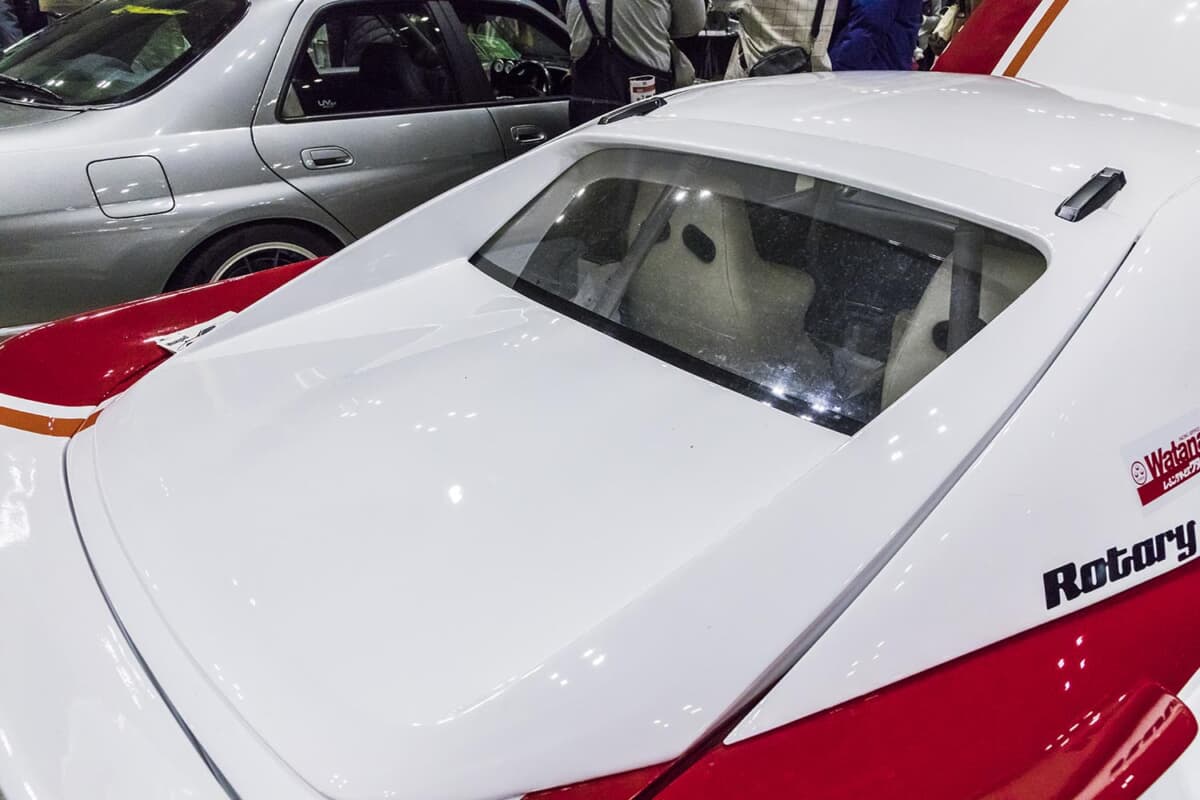 このマシンは、ロードスターカスタムで有名な長野県のガレージIが手がけた、「NA22C ロータリーロードスター」と名付けられた1台。レース仕様のRX-7風の外装キットは神奈川県のジェット・ストリームが製作したもので、近い将来キットとしての販売も予定されているそうだ。