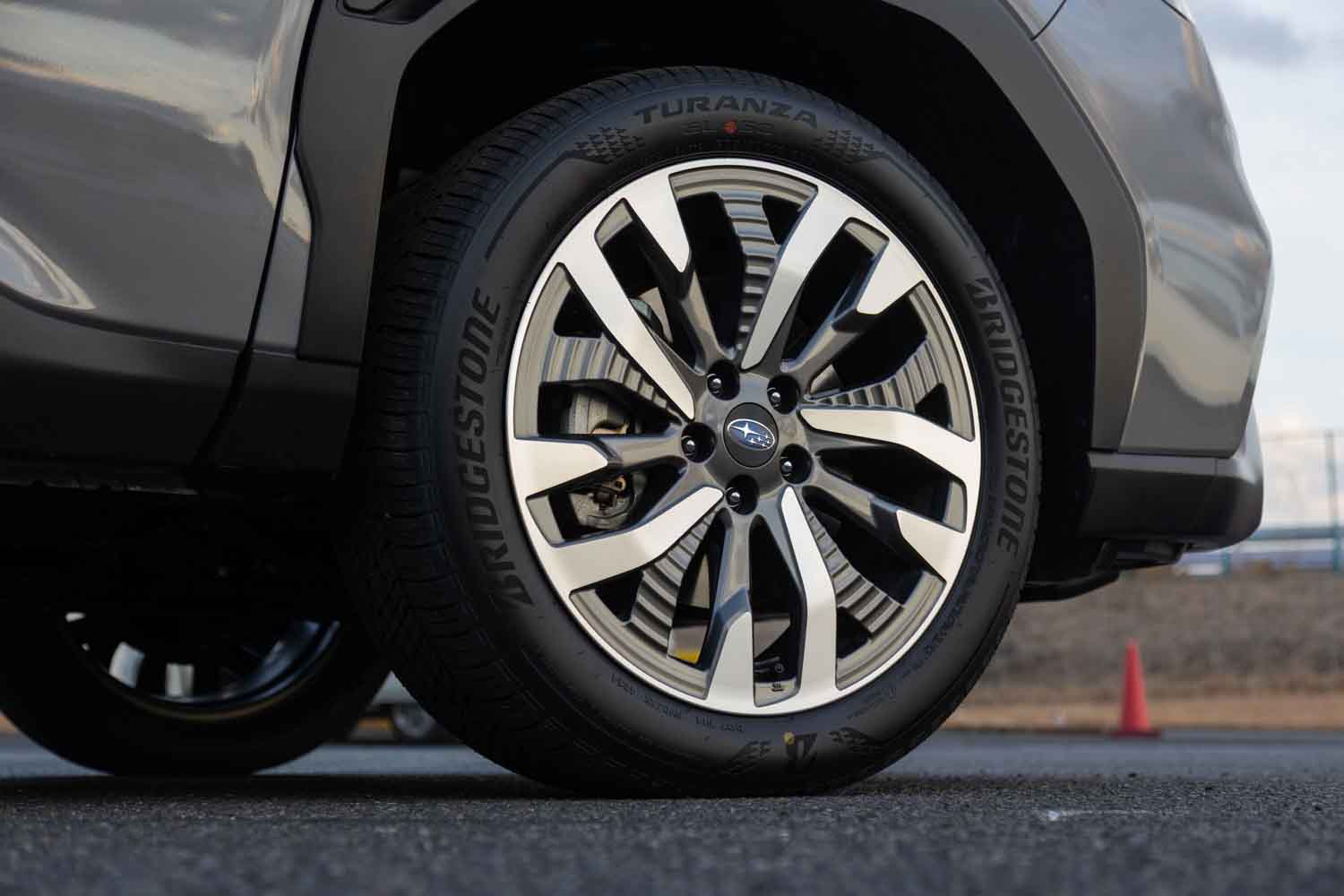 タイヤはスポーツとX-BREAKが18インチ、プレミアムは19インチ。サイズの違いに関わらずオールシーズン(スノーフレークマーク無し)だが、サーキット走行でトレッド面が荒れ始めていた状態においても、走り出しの際にゴロゴロ、ガサガサといった転がり感が伝わってきにくい。とくにモーター駆動で動き出すストロングハイブリッドにおいては、そこがよりわかりやすく伝わり、スバルが言うところの「動的質感」の入り口から上級移行を感じる。
