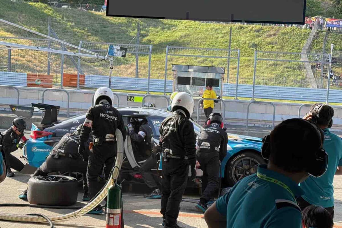 3位は堤優威選手、平良響選手、卜部和久選手がドライブする2号車の「HYPER WATER INGING GR86 GT」。優勝はほぼ確実と思われた井口卓人選手と山内英輝選手の61号車「SUBARU BRZ R&D SPORT」はトップを走りながら最終周のダンロップコーナー先でまさかのストップ。ボンネットからは煙が出ていて、エンジントラブルではないかとのこと。わたくしも今回はスバルの優勝を確信し、優勝の模様をピットで取材しようと待ち構えていたのだけれど、まさかの……(号泣)。本当に最後の最後までレースはわからないものね。