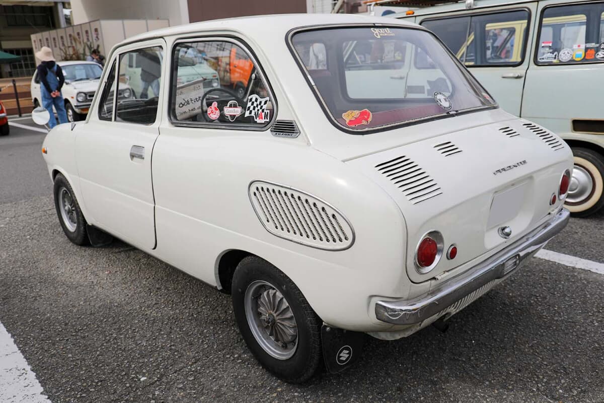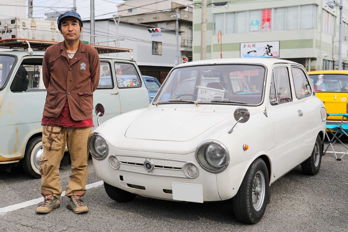 に参加していた、スズキ2代目「フロンテ360」のオーナーの黒田知宏さん。趣味は、陶芸に家のリフォーム。クルマはその次ぐらいの優先順位と言うが、クルマの所有遍歴を聞くと、スバル「360」、三菱「500」、マツダ「R360クーペ」、ダイハツ「フェローバン」、三菱「ミニキャブバン」、スバル「サンバー」など、ご本人の言葉とは対照的なほど、なかなかのラインアップだった。
