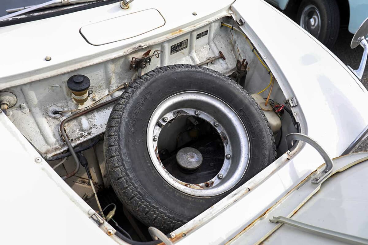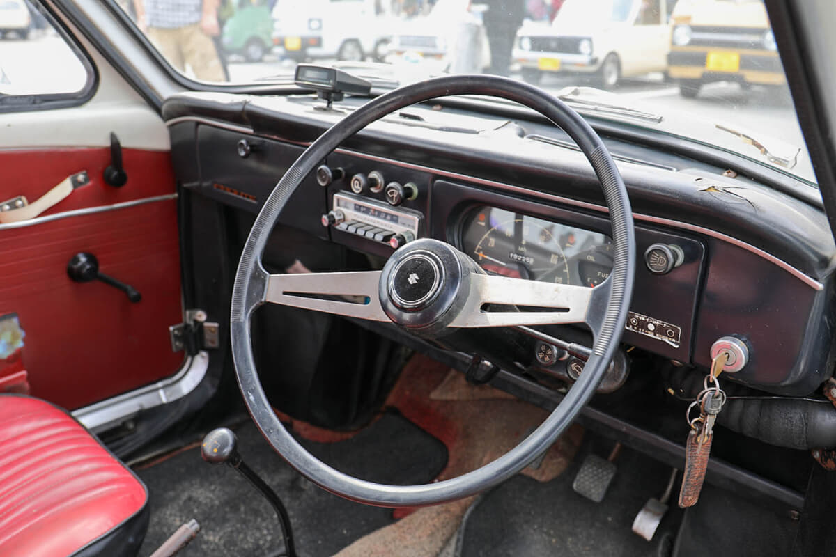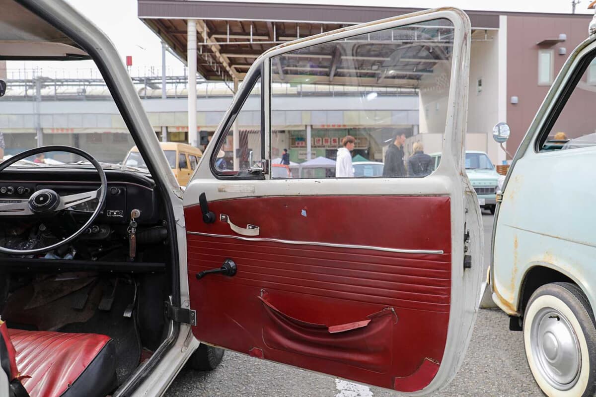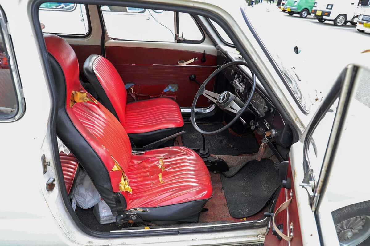 このフロンテ360も、走行に支障がある箇所は修理や整備をしているが、基本的には前オーナーのままとのこと。エンブレムなども外されてしまっているため詳細は不明だが、グレードはおそらくスーパーデラックスと予想しているそうだ。内装も張り替えられているようだが、これも前オーナーが施したもの。黒田さんは基本的に乗れる状態であれば問題なしというスタイルで、レストアなどへの時間と予算を割くくらいならば、家のリフォームなどにつぎ込みたいとのこと。